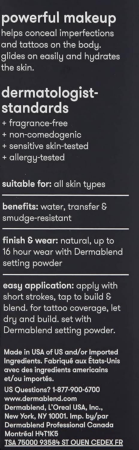 SAFE FOR ALL SKIN TYPES, TONES AND CONDITIONS. Dermablend is a dermatologist created brand with high safety standards: fragrance-free, SLS-free, phthalate-free, non-comedogenic, allergy-tested, and sensitive skin tested.