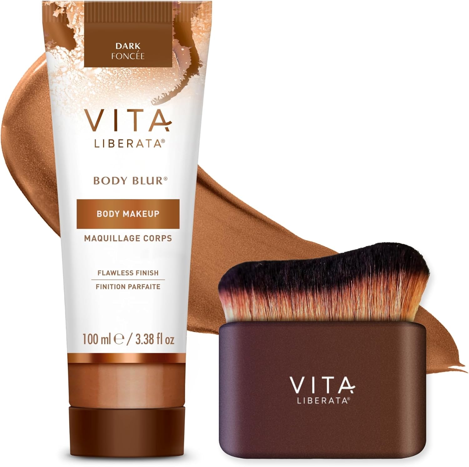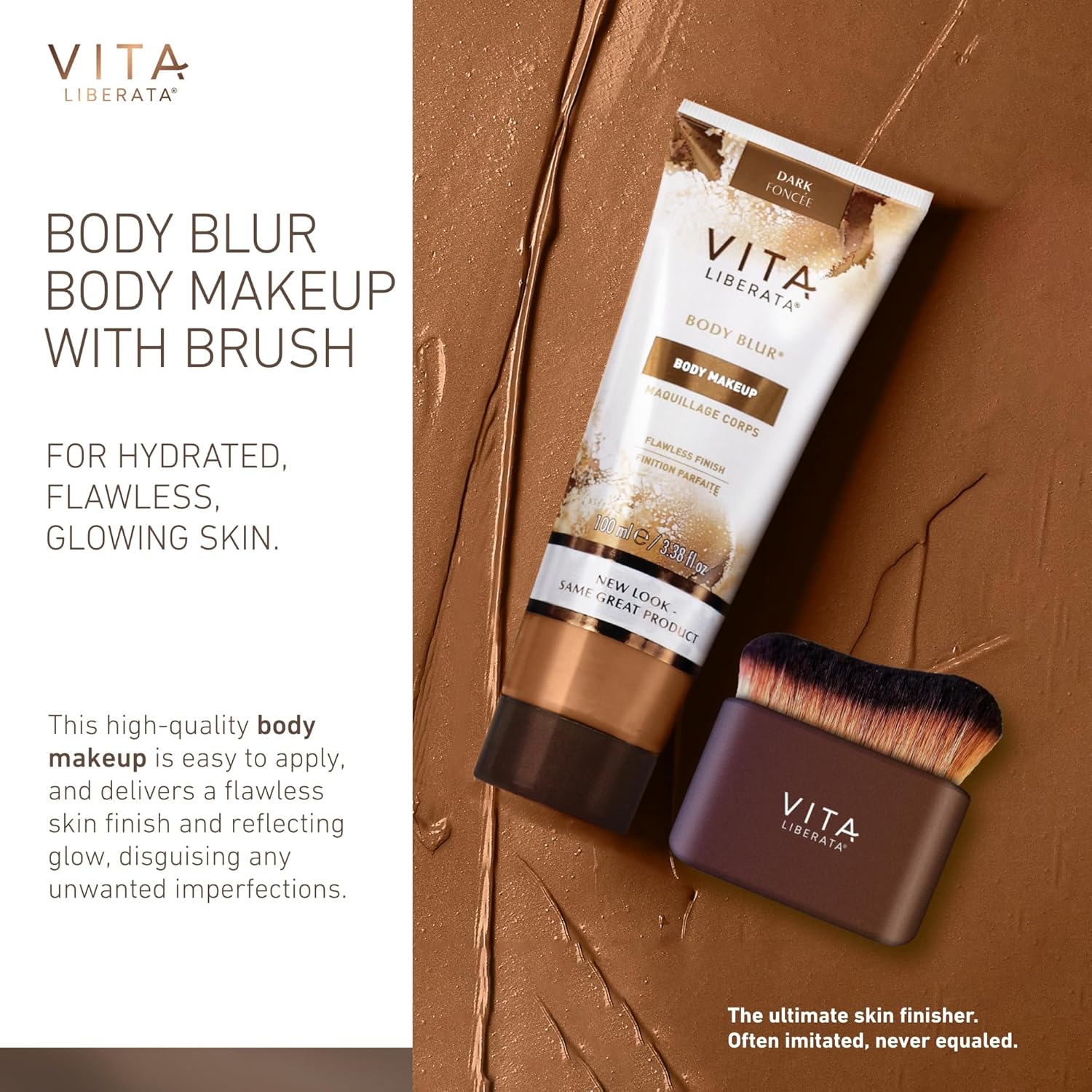 VITA LIBERATA Body Blur Dark 100ml & Brush Bundle, Leg & Body Makeup, Skin Perfector, Wash Off Instant Tan, Streak Free Application Blending Brush, Water resistant, Disguise Imperfections