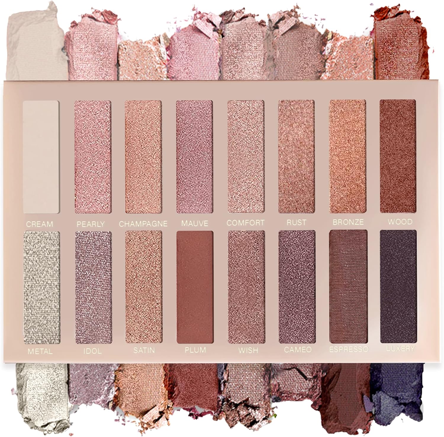 ESSENTIAL NATURAL COLOR RANGE with outstanding matte, metallic, satin and shimmering earthy hues. Its glamorous NUDE SHADES – from soft beige to luscious chocolatey brown – are suitable for naturally beautiful to dramatic smoky eye makeup looks.