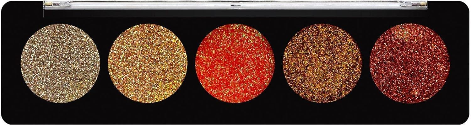 PRESSED GLITTER PALETTE: This stunning palette features five vibrant and mesmerizing shades of premium pressed glitter eyeshadows. Each shade is designed to add a touch of glamour and sparkle to your eye makeup looks.