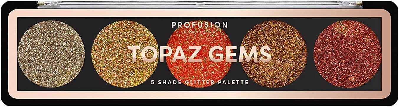Profusion Cosmetics Topaz Gems 5 Shade Glitter Eyeshadow Palette for Stunning Eye Look, Raise Your Makeup Routine With Premium Beauty Tool