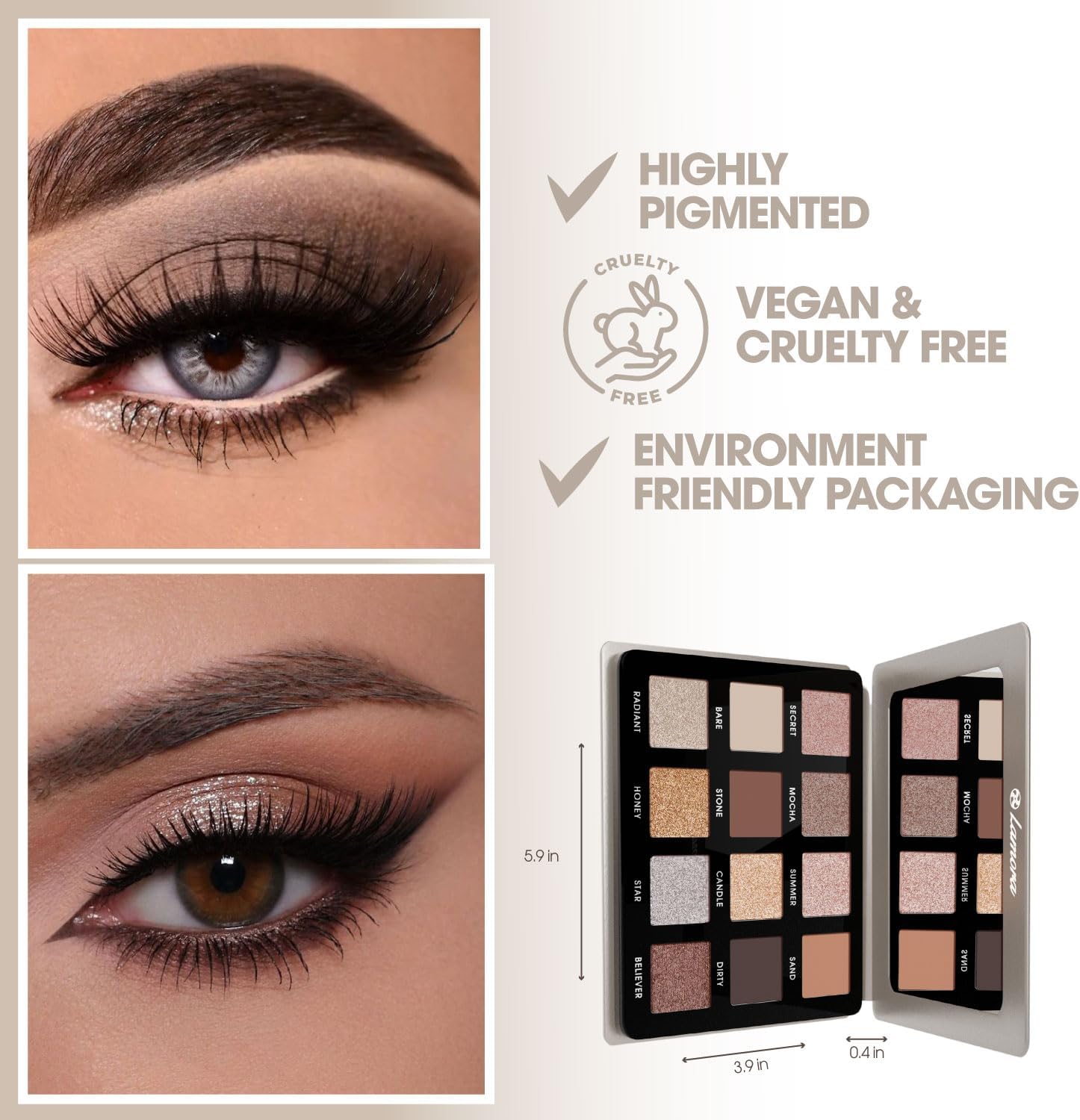 ❤ WEARS BEAUTIFULLY ON ANY SKIN TONE AND SKIN TYPE ❤ – This unique natural cool toned makeup palette was created with the most buttery smooth, eyeshadow formula, neutral brown to taupe, gold, and silver shades for ultra-pigmented, long lasting looks. Get your natural or glam look with a deep range from very smokey shades to plenty of lighter shades to add brightness.