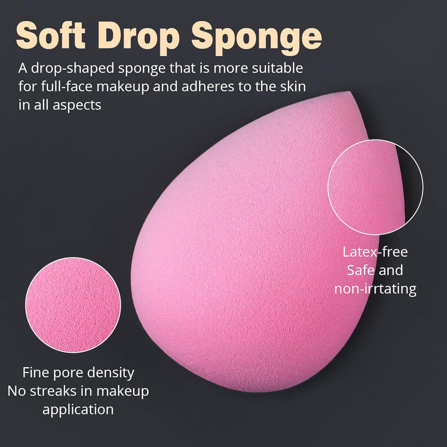 Makeup brush set with two makeup sponges, non-latex beauty sponge with teardrop shape. Use the flat bottom for forehead & cheeks, pointed end is for targeting small areas