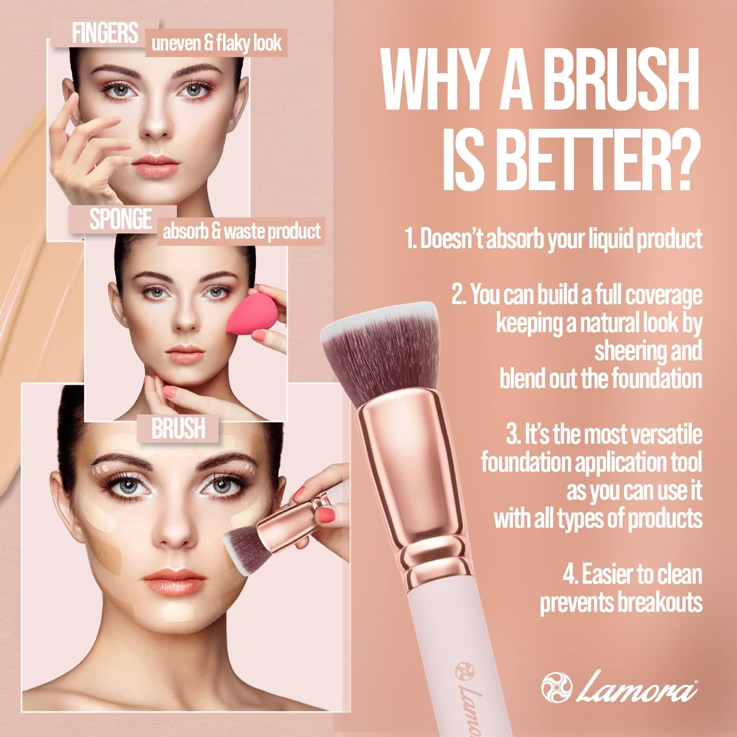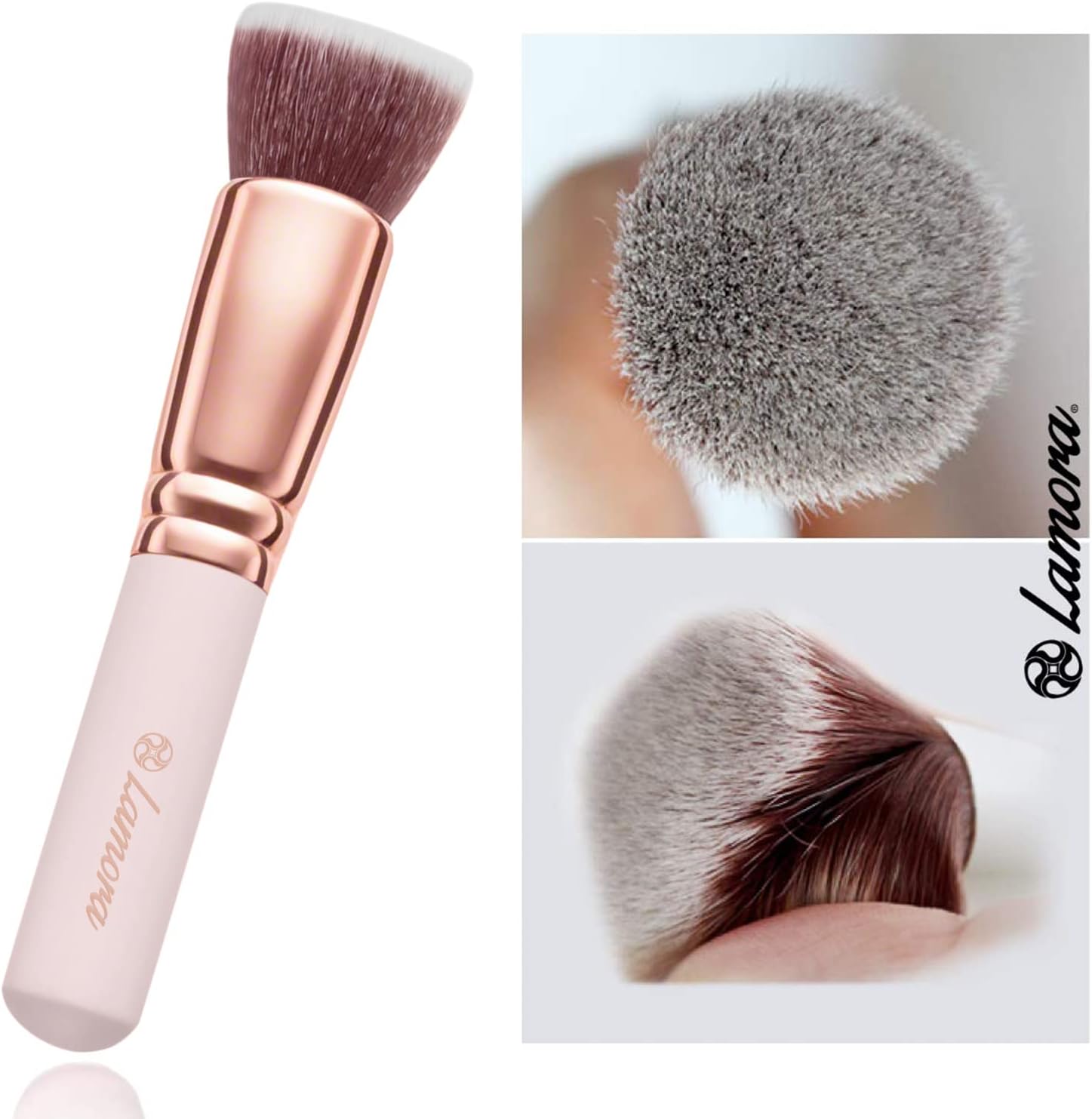 The Lamora FLAT KABUKI brush is a professional foundation brush that everyone can afford. It comes with high quality synthetic bristles and a black wooden handle. Use this makeup brush as a powder or stippling brush to apply powder, cream and liquid products onto the skin without trapping or absorption of product. It does not soak up excessive amounts of product like other makeup brushes.