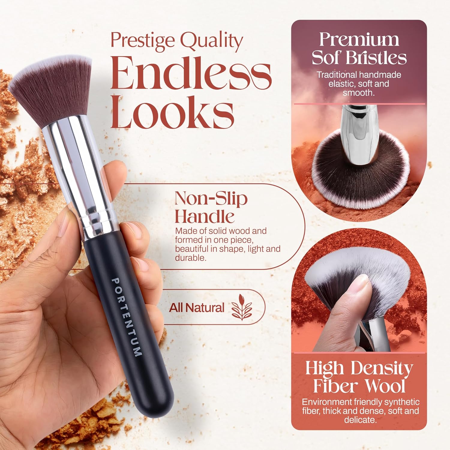 No shedding & cruelty-free synthetic hair, sturdy & durable brush handle. Face brush has soft feeling, always give you flawless and smooth makeup application