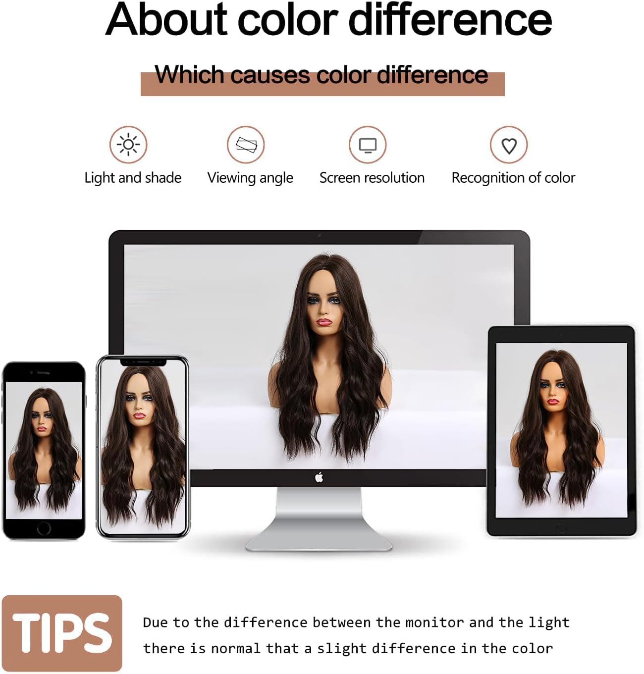 WIG STYLE: Soft ladies long heat ok natural curl sleek-style wig that falls naturally , fashionable and pretty, perfect for white women. The color is Black Brown The Length is 24Inch (Kindly not that slightly color difference between different monitors)