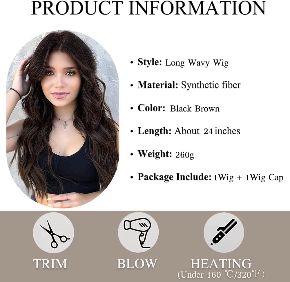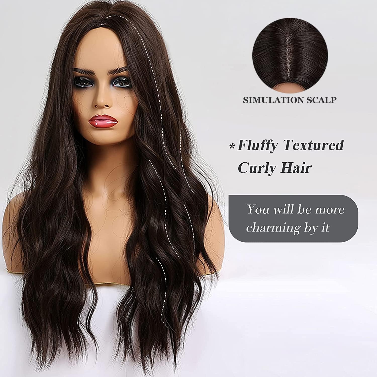 Esmee Long Wavy Dark Brown Wigs for Women Natural Synthetic Hair Heat Resistant Wigs for Daily Party Cosplay Wear-24 Inches