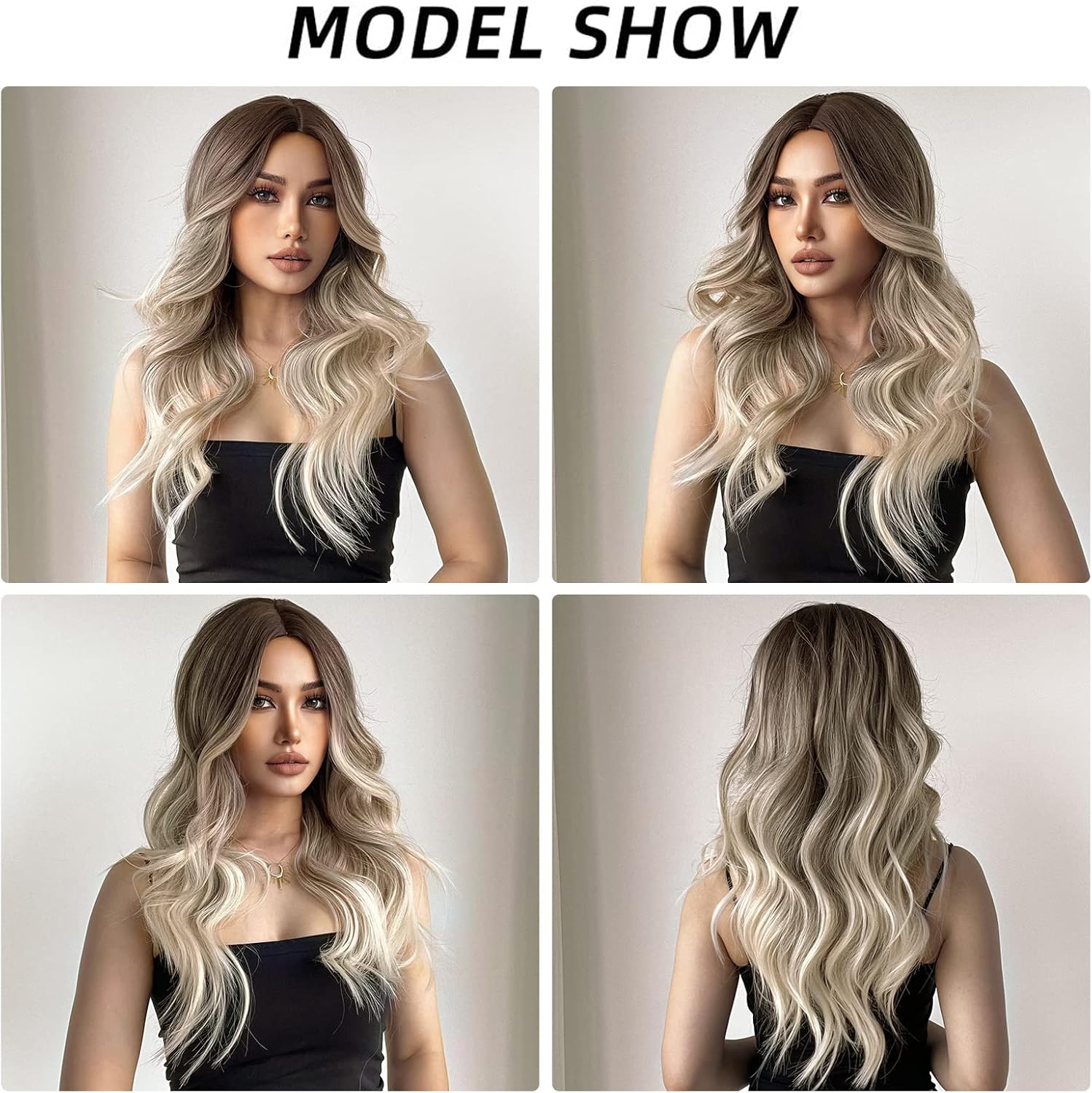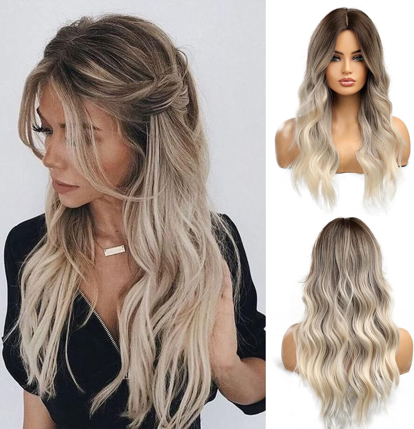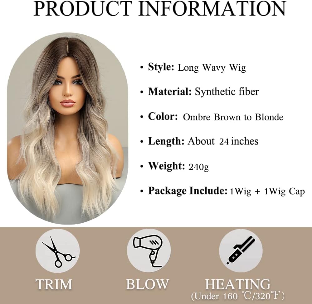 Esmee Long Wavy Ombre Brown to Blonde Wigs for Women Synthetic Hair Heat Resistant Ombre Wig for Daily Party Cosplay Use-24Inches