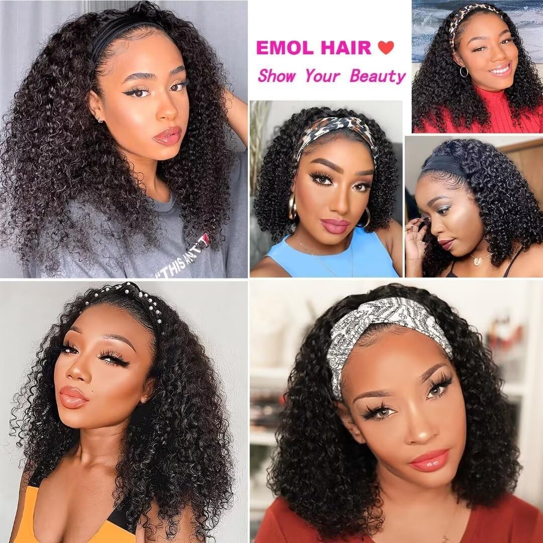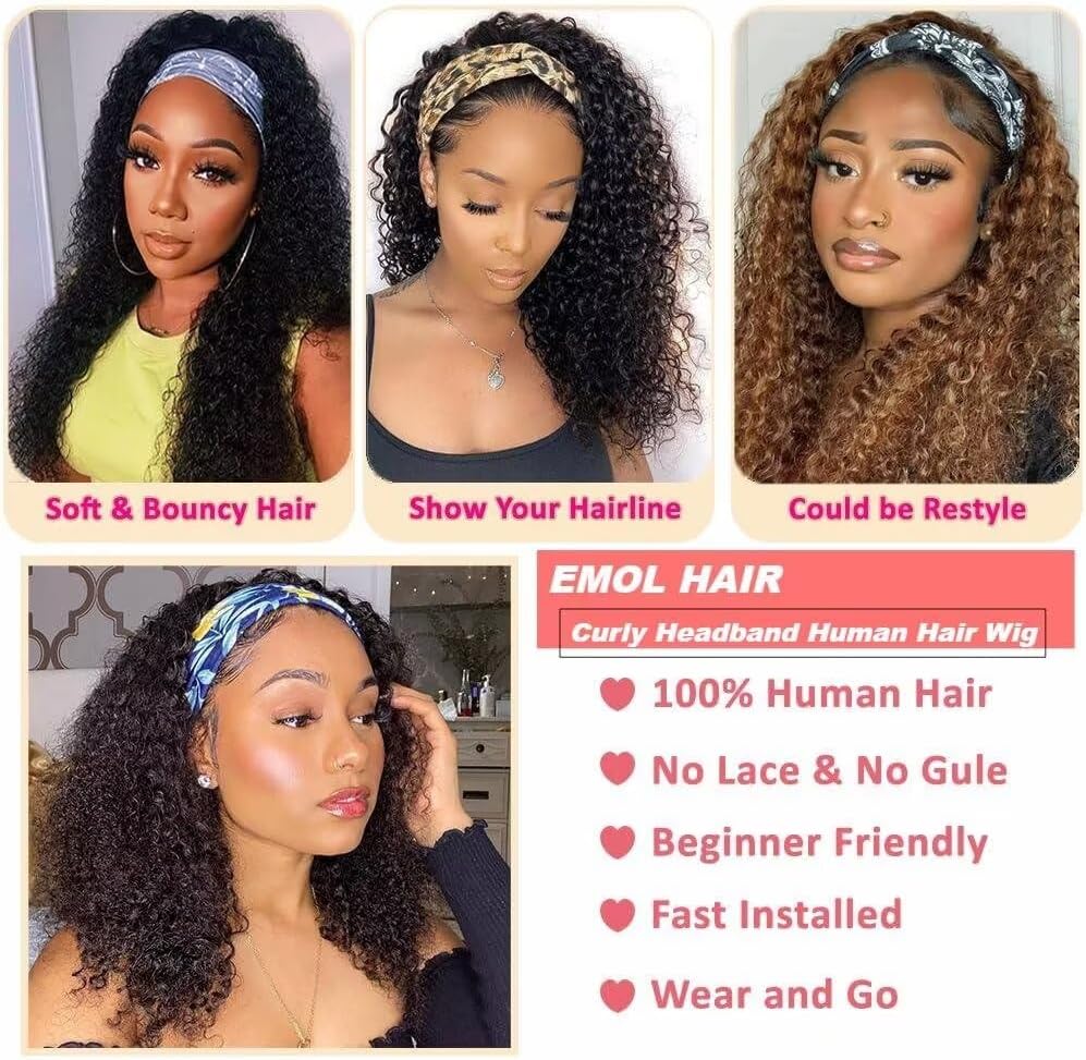 Headband Kinky Curly Human Hair Wigs For Women 20 Inch Brazilian Kinky Curly Headband Wigs Human Hair Emol Hair Scarf Wear And Go Gluelees Wig For Women 10a Virgin Hair Natural Black Color