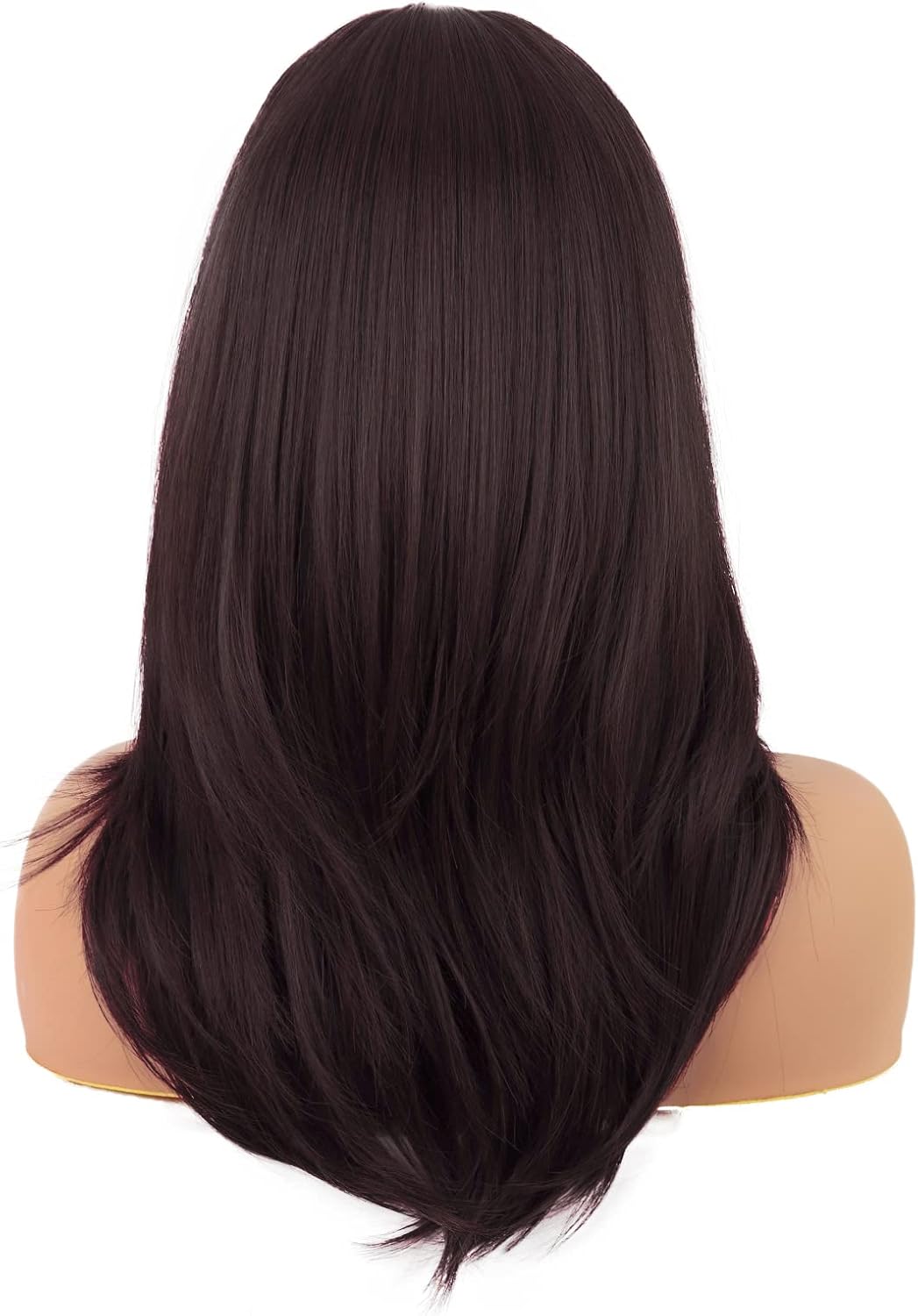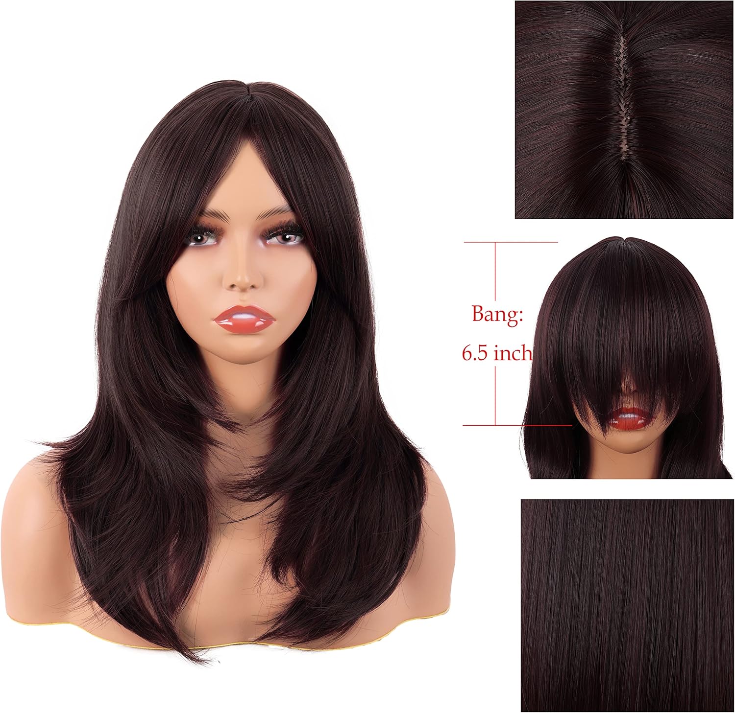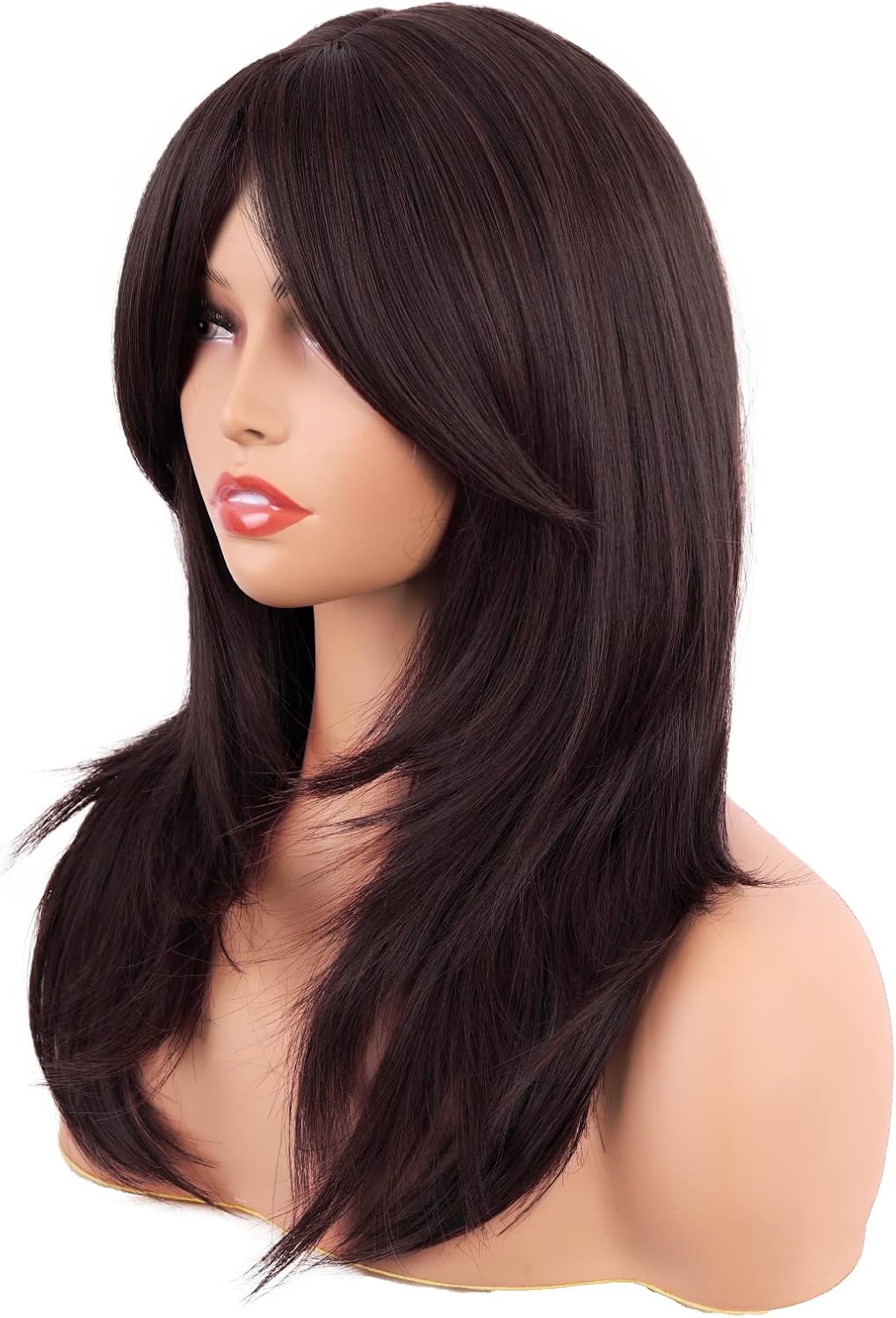MapofBeauty 20 Inch/50 cm Long Layered With Bangs Straight Synthetic fiber Shoulder Length Hair for Daily Use or Party Wig (Dark Brown)