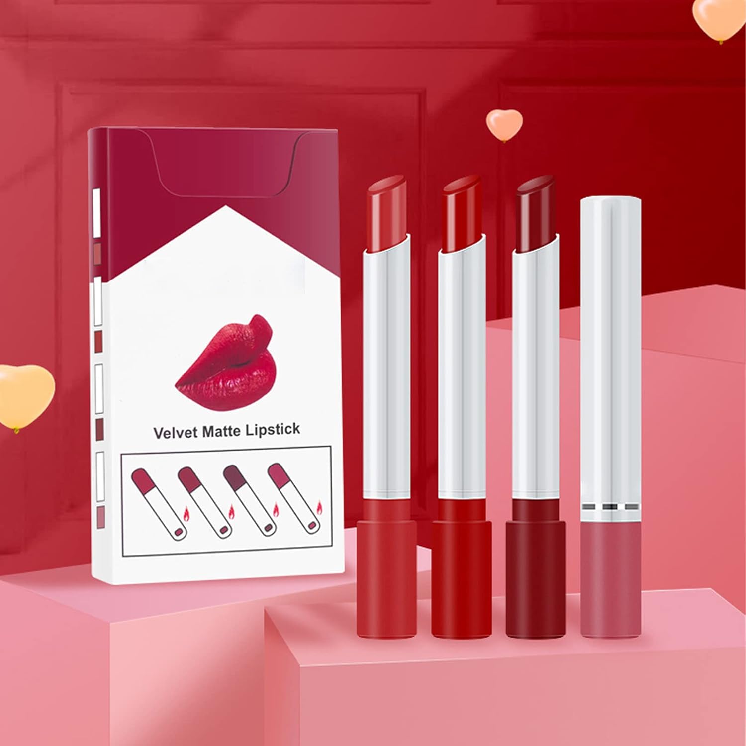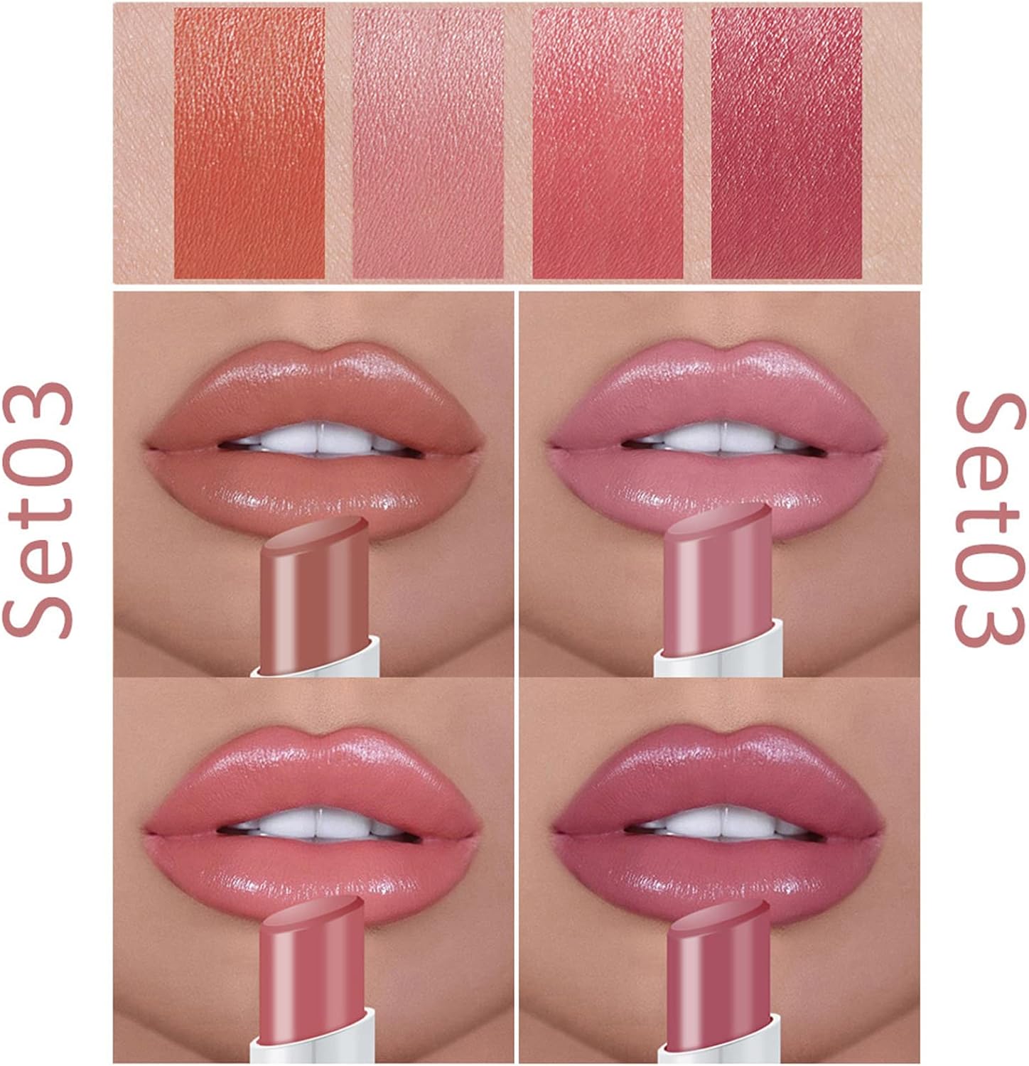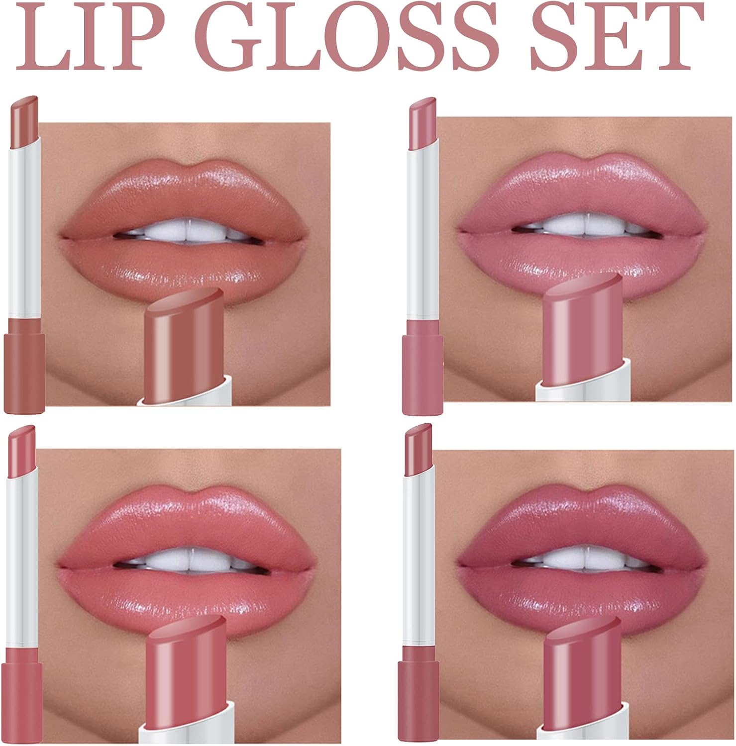 MEITREND Plumping Lip Gloss Set,Lipstick Sets 4 Pcs High Pigmented Velvety Nude Cigarette Lipgloss, Long Lasting Non-Fading Waterproof Shimmer Liquid Lipsticks,Makeup Sets For Women Gifts Surprise