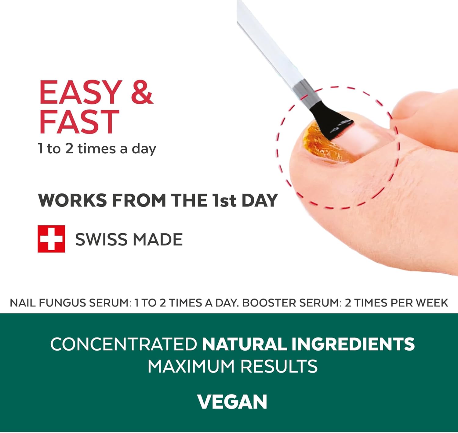 ✅ QUICK AND EASY TO USE ●● The bottle comes with an integrated applicator brush. For optimal efficacy, apply the PURIFIANT oil-serum onto the nail and its edges daily, AM and PM, and leave to penetrate. Apply the BOOSTER supplement twice weekly onto the nail and its edges, preferably 5 minutes before applying the PURIFIANT oil-serum.