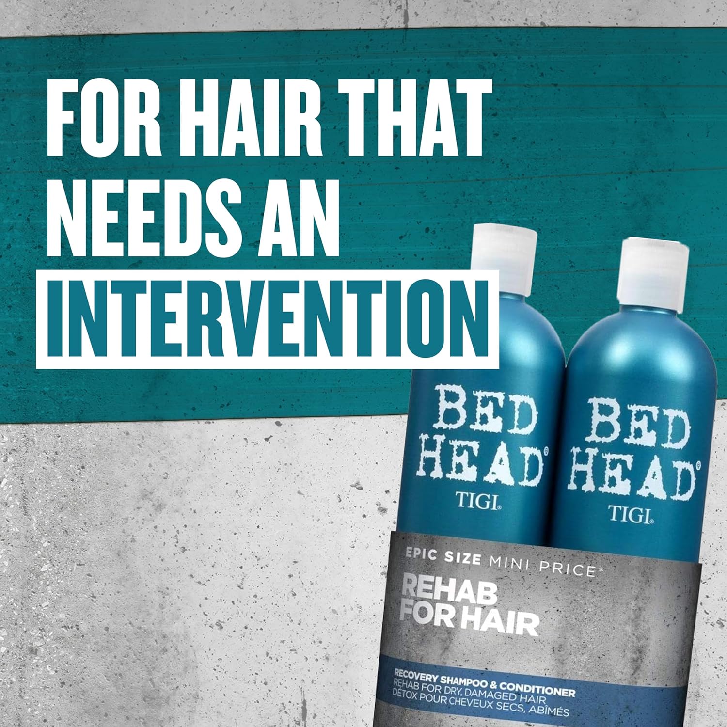 Give moisture-deprived, dry hair a rush of hydration with the Bed Head recovery shampoo and conditioner. Helps create the salon feeling at home.