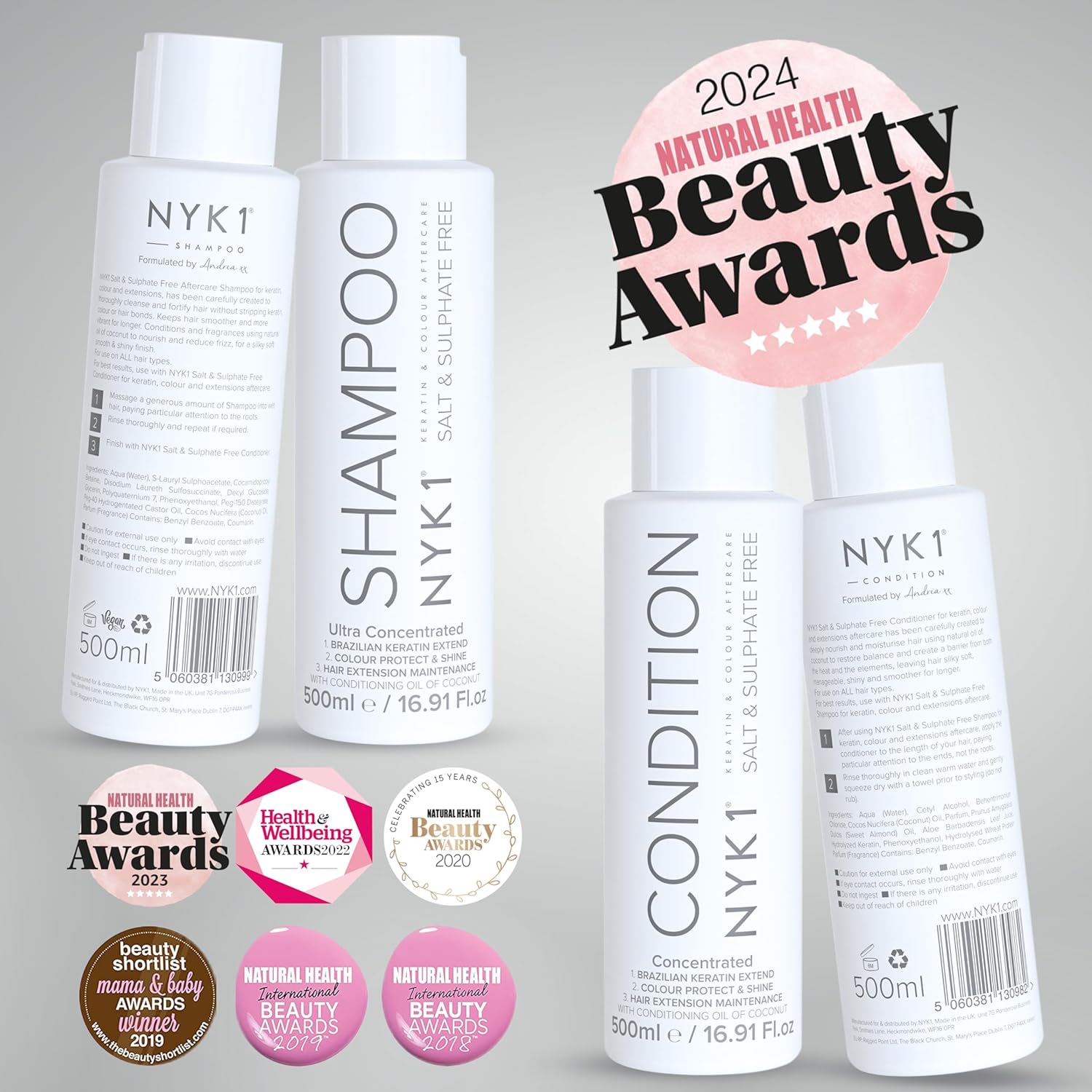 NYK1 Sulphate Free Hair Shampoo And Conditioner Set (500ml x2) Sulfate Free Shampoo And Conditioner Sets for Extensions, Colour and Keratin Treatment – Gentle Cleansing and Prevents Breakage
