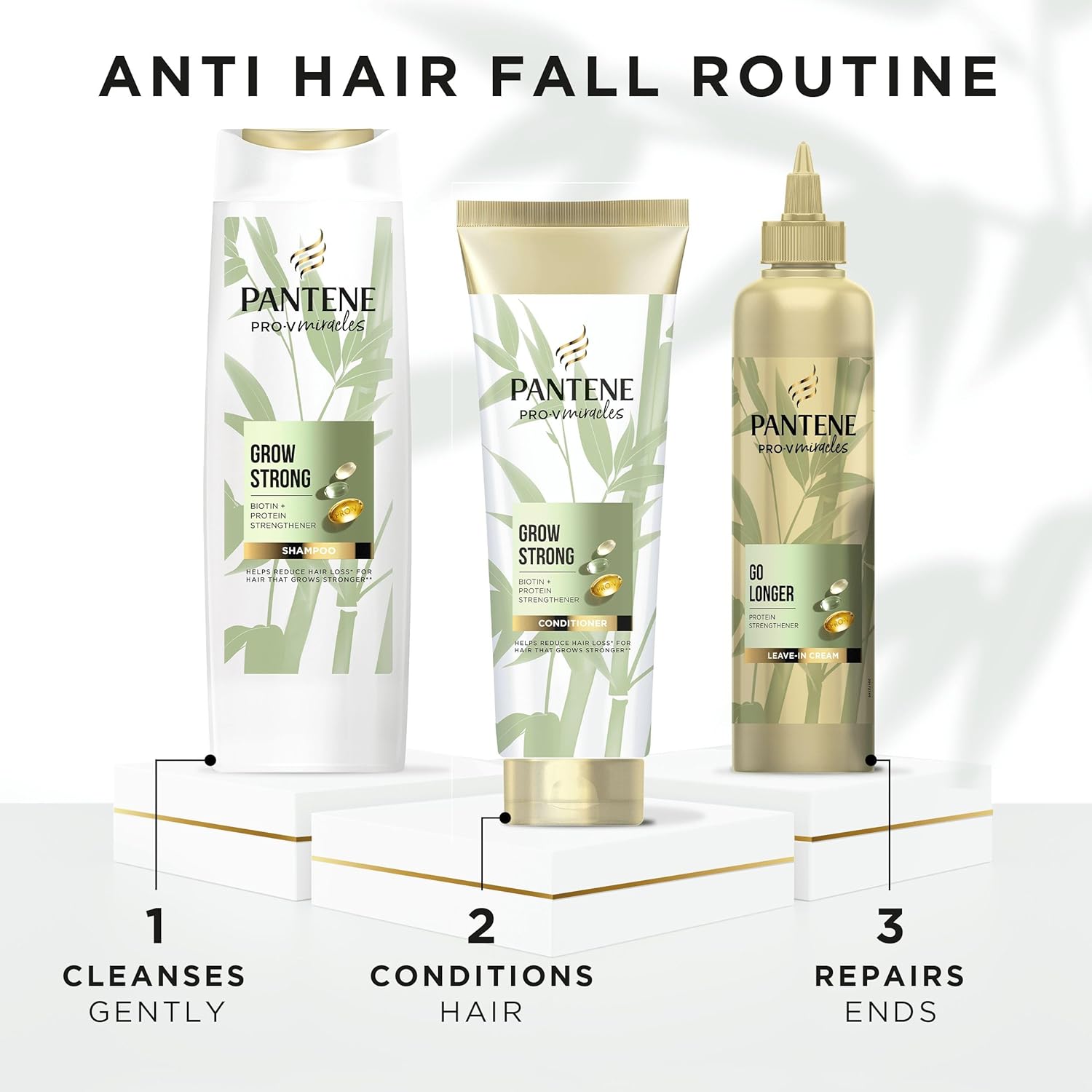 STRENGTH* STEP-BY-STEP: For best results use all our Grow Strong hair products: shampoo, conditioner, leave-in-condtioner cream and hair treatment *strength against styling damage