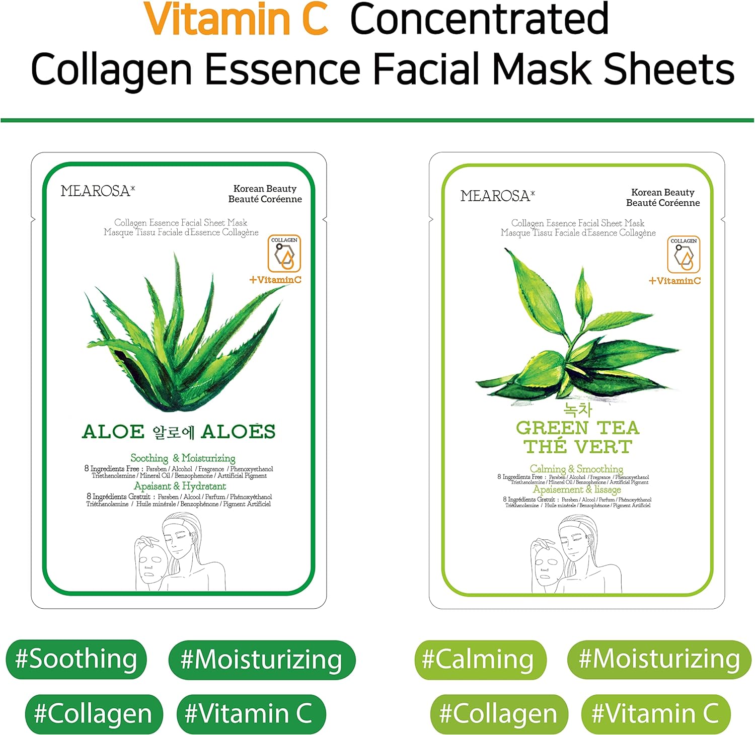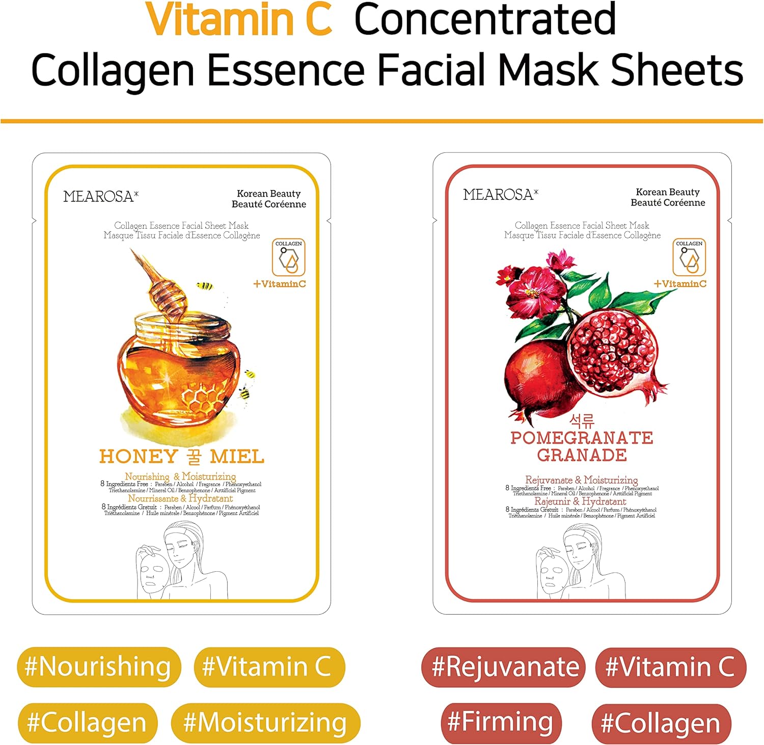 MEAROSA Vitamin C Collagen Firming Facial Sheet Mask Korean Skin Care Hydrating & Nourishing Premium Quality Natural ingredients Essence Sensitive skin(8 Variety pack 25ml)