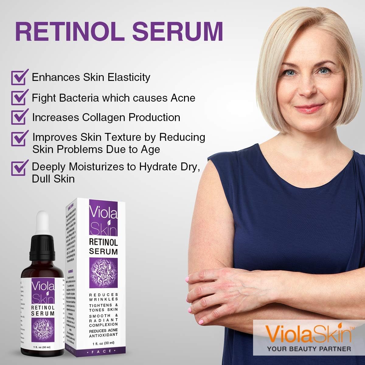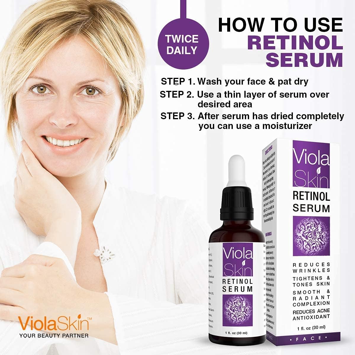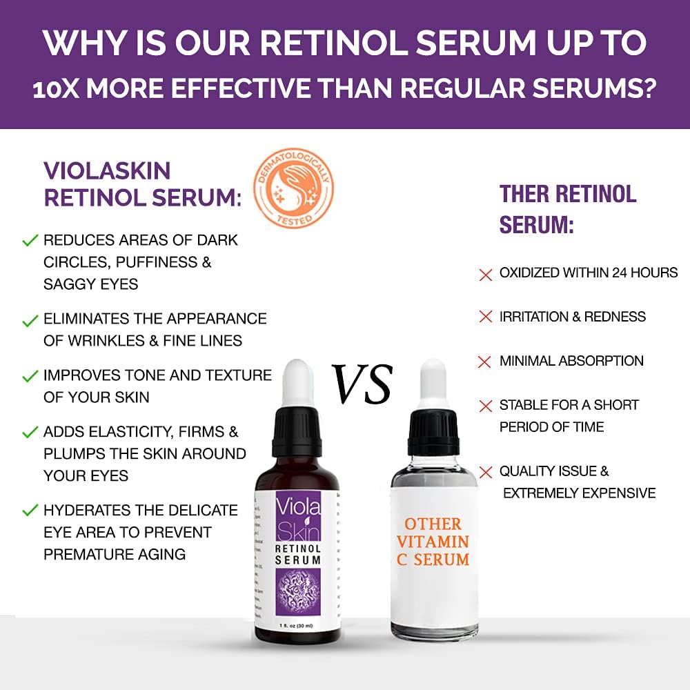 ✅ NO NASTIES! CLEAN & SAFE – ViolaSkin’s Retinol Face Serum contains organic aloe vera for extra nourishing care of your skin, face & neck, – suitable for women & men and all skin types. Perfect as a moisturiser which can be used at night. Retain water to keep your facial tissues well lubricated and moist to avoid dry and flaky skin. You’ll love this face serum and it’ll be an essential part of your daily skin care routine.