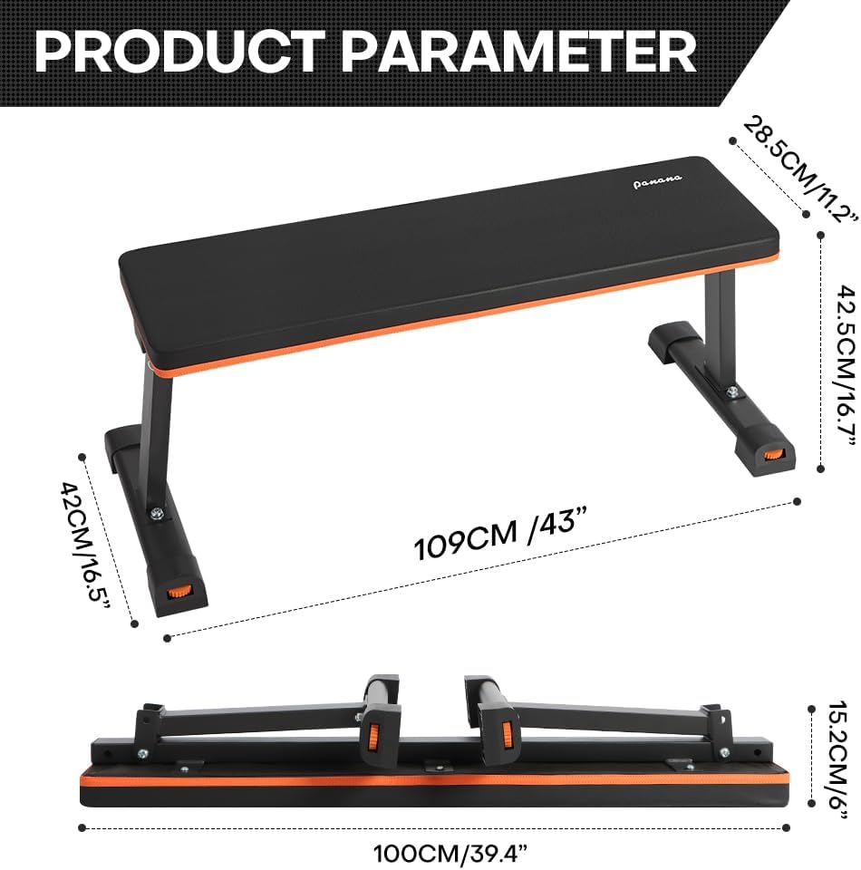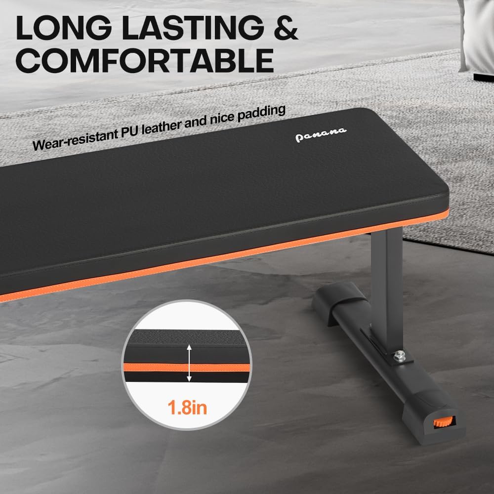 Panana Weight Bench Flat Bench Strength Training Bench, Foldable Bench for Full Body Workout Home