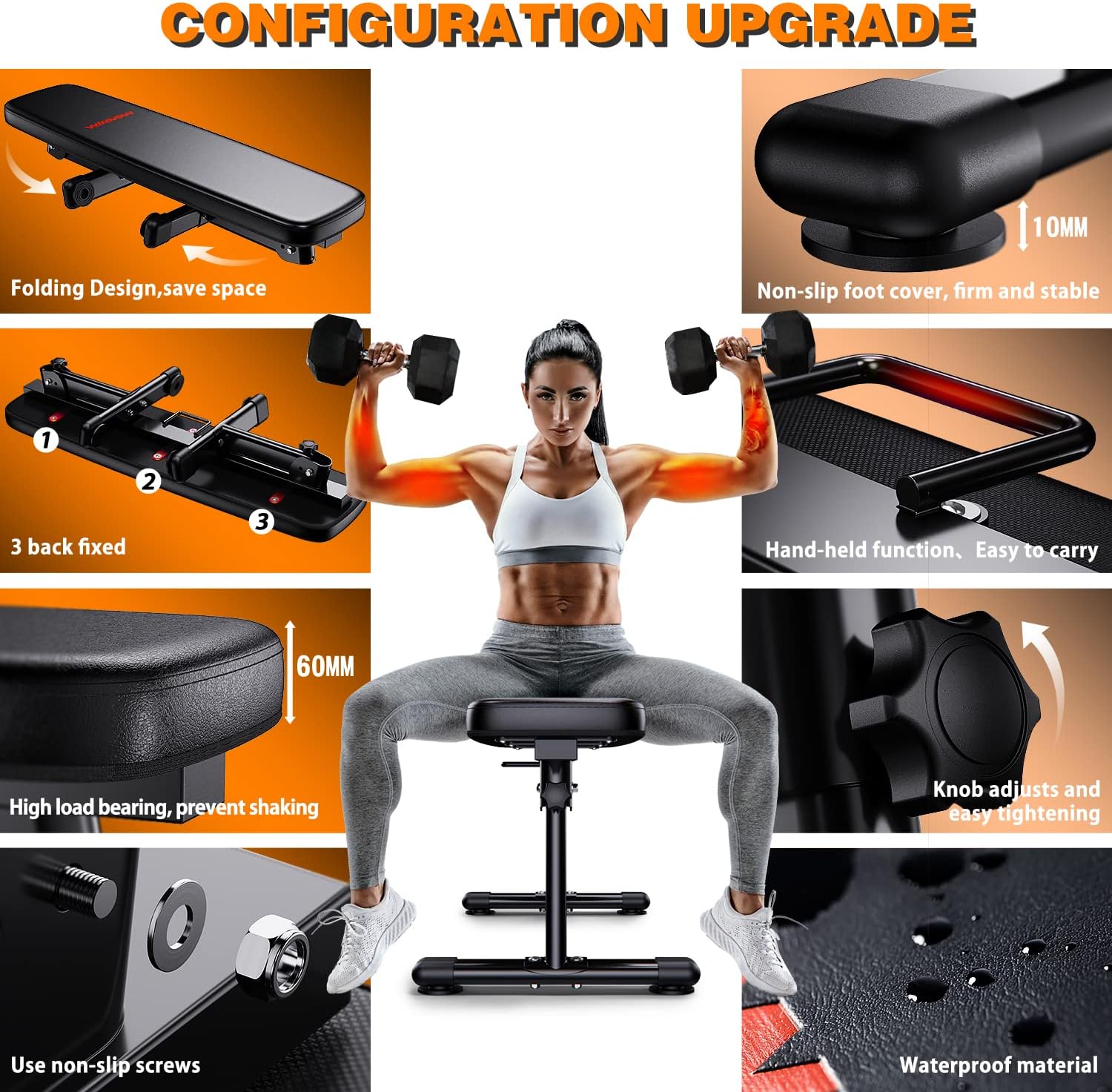 Practical carrying handle: This fitness bench has an innovative design and provides a carrying handle for convenient carrying. Therefore, you can easily and quickly carry the training bench anywhere.