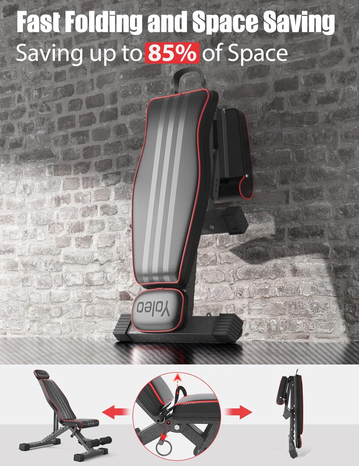 Yoleo Adjustable Foldable Weight Bench with Extended Head and Spine Support, 300KG/660LB Fast Folding Incline Decline Flat Bench for Home,Workout, Gym