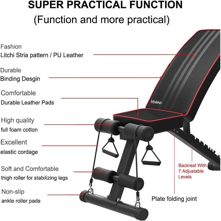【VERSATILITY ADJUSTABLE WEIGHT BENCH】: YOLEO adjustable weight beach has 7 backrest pad positions to meet all you need when workout. The Foldable Workout Bench could be assembled simply as well as Easy To Carry& storage.