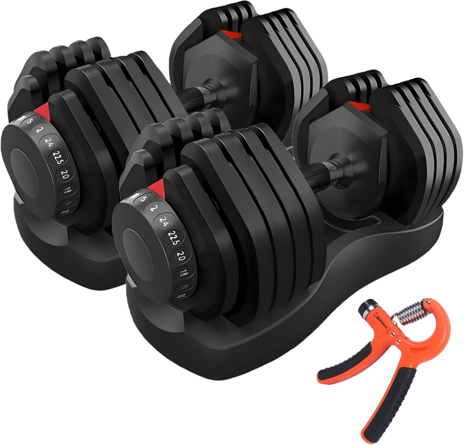 HAKENO 2x24kg/40kg Pair Adjustable Dumbbell 15 Weight in 1 with Fast Automatic Adjustable and Weight Plate for Body Workout Home Gym dumbbell(Include 2 dumbbells + 2 hand Gripper)