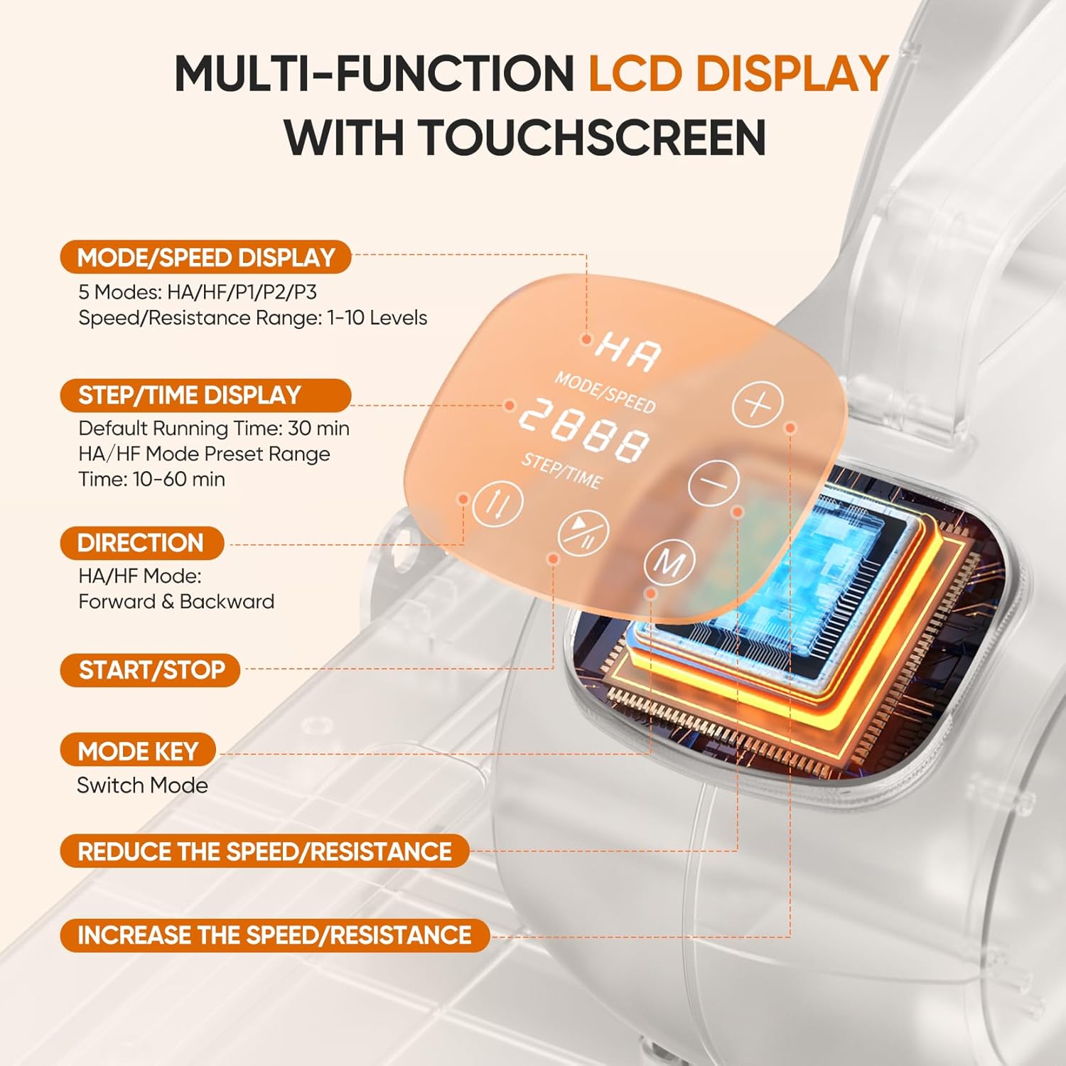 【Touchscreen LCD Display】The easy-to-read LCD display shows your exercise data, including mode, time, speed, resistance, and counter. This LCD display also features touchscreen functionality, enabling you to adjust the desired exercise mode by tapping the screen