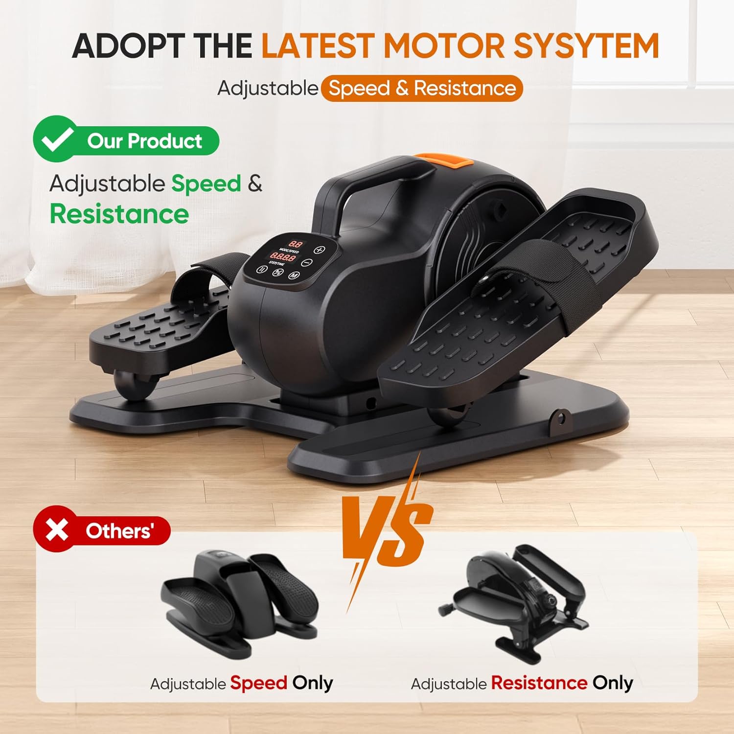 【2 IN 1 Adjustable RESISTANCE & SPEED】Unlike other elliptical machines that can only adjust speed or resistance, the Dripex Under Desk Elliptical employs the latest motor system, offering 1- 10 levels of adjustable RESISTANCE and SPEED. This allows you to enjoy a powerful and ultra-quiet workout, and you can customize your workout intensity according to your training objectives