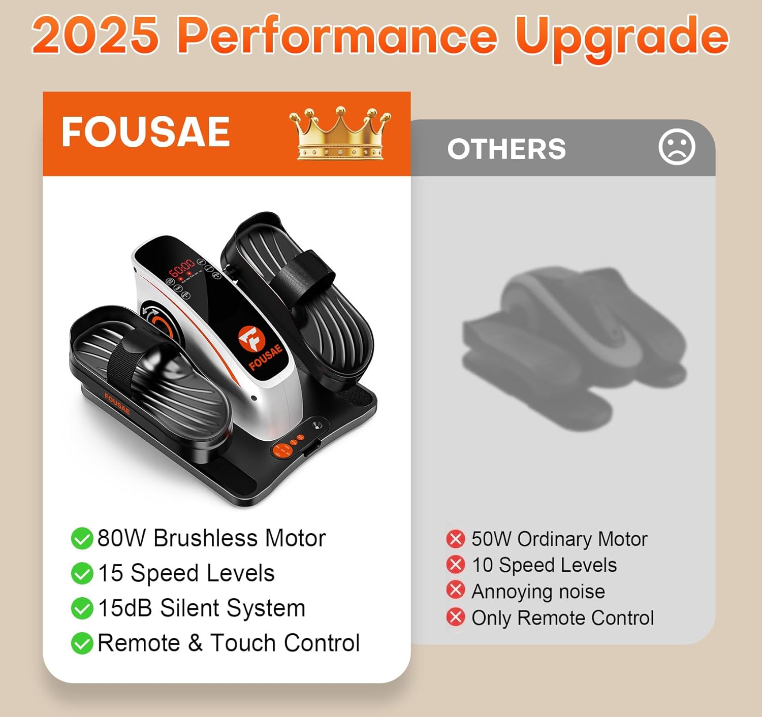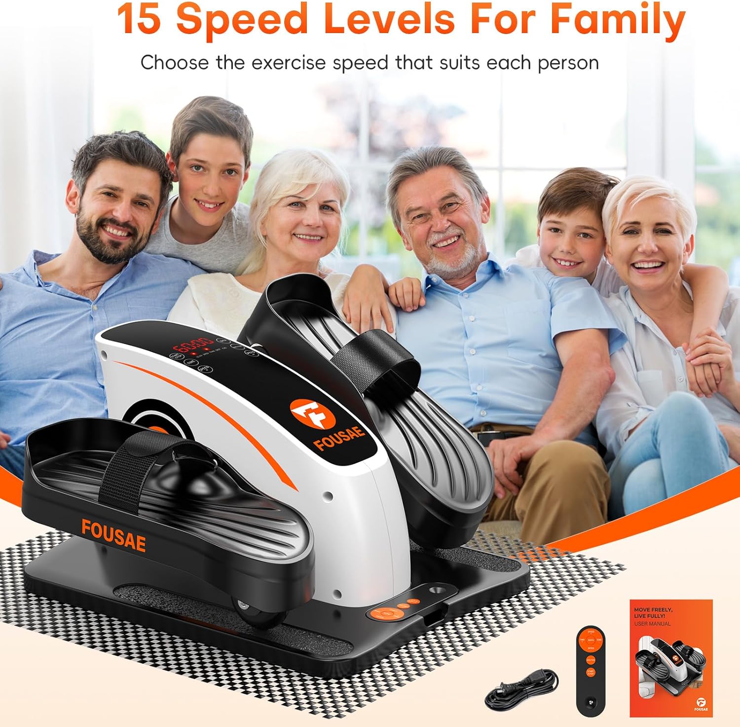 UPGRADED TO 15 SPEED LEVELS: Leg exercise machine has been upgraded to 15 speed levels, with 0-60 minute time levels, and the pedal direction can be changed to exercise different muscles; It perfectly meets the needs of the whole family for various workouts; Feel the power and physical changes brought by FOUSAE technology.