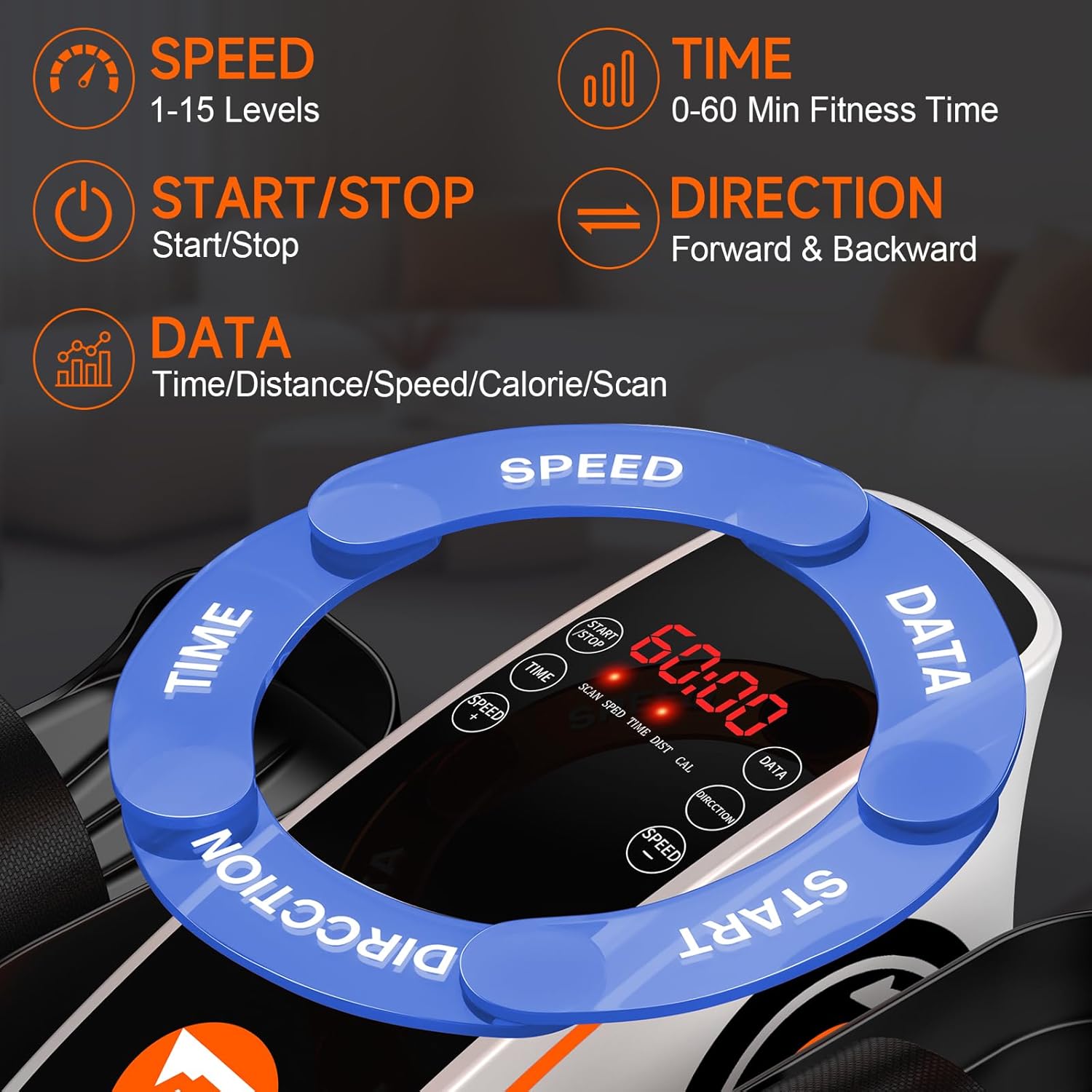 DIGITAL DISPLAY & REMOTE CONTROL: Track your workout progress with LED display showing time, speed, calories burned, and distance; The remote control starts and adjusts your under desk elliptical with one click, without bending over! You can easily change modes and adjust speed (15 levels), time (60 minutes), and pedal direction.