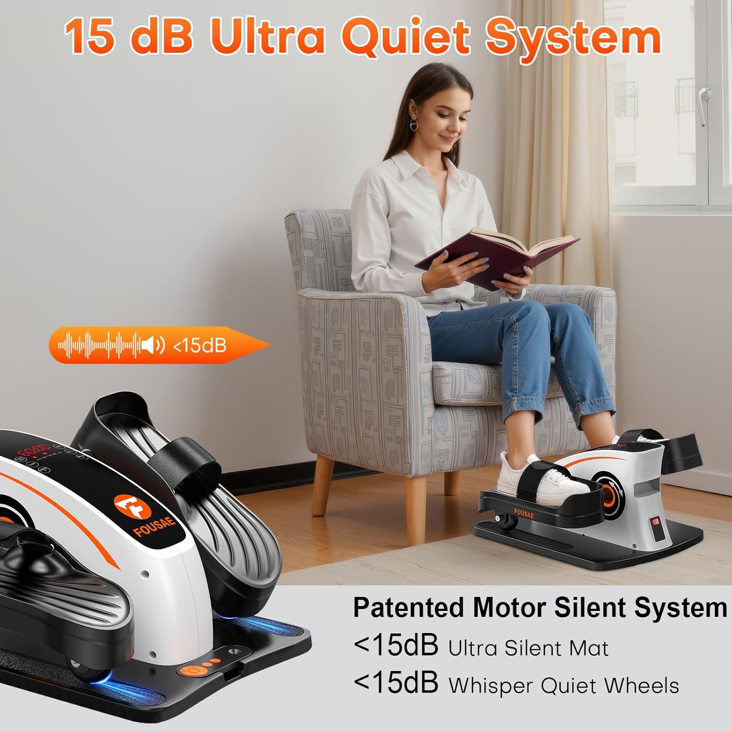 2025 UPGRADED 80W Ultra-Quiet MOTOR: The mini electric elliptical machine is equipped with a patented 80W motor; More abundant power provides 15 speed levels and ensures smooth and ultra-quiet operation (<15 dB) under high-load and high-speed conditions; Use it while working, watching TV, or reading without disturbing others.