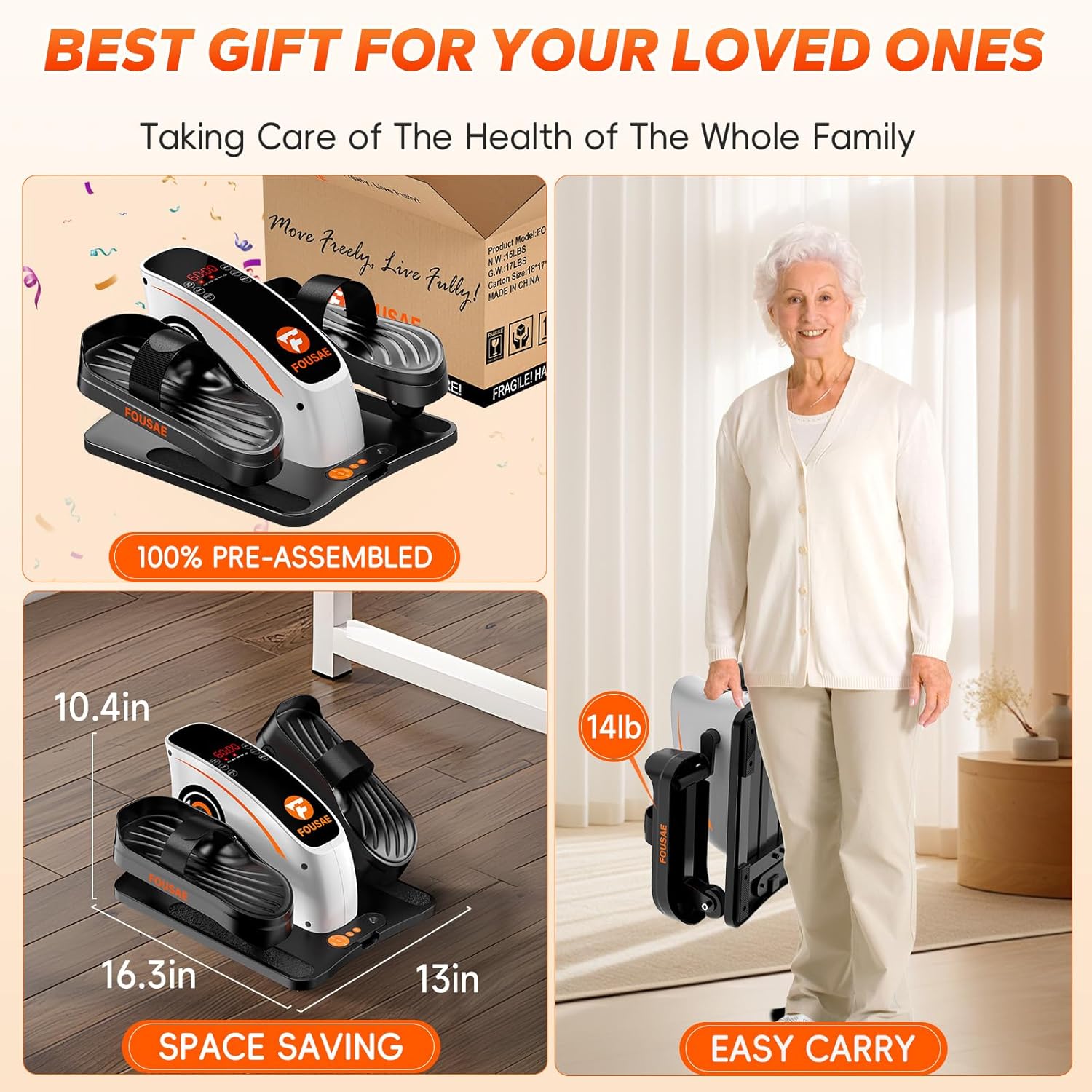 FOUSAE Elliptical Training Machine–The Best Intimate Gift for Parents, Family, and Friends Designed to ignite a passion for fitness in every heart, our low-impact & zero-pressure ellipse leg exerciser is more than just an exercise tool—it’s a ticket to holistic wellness.