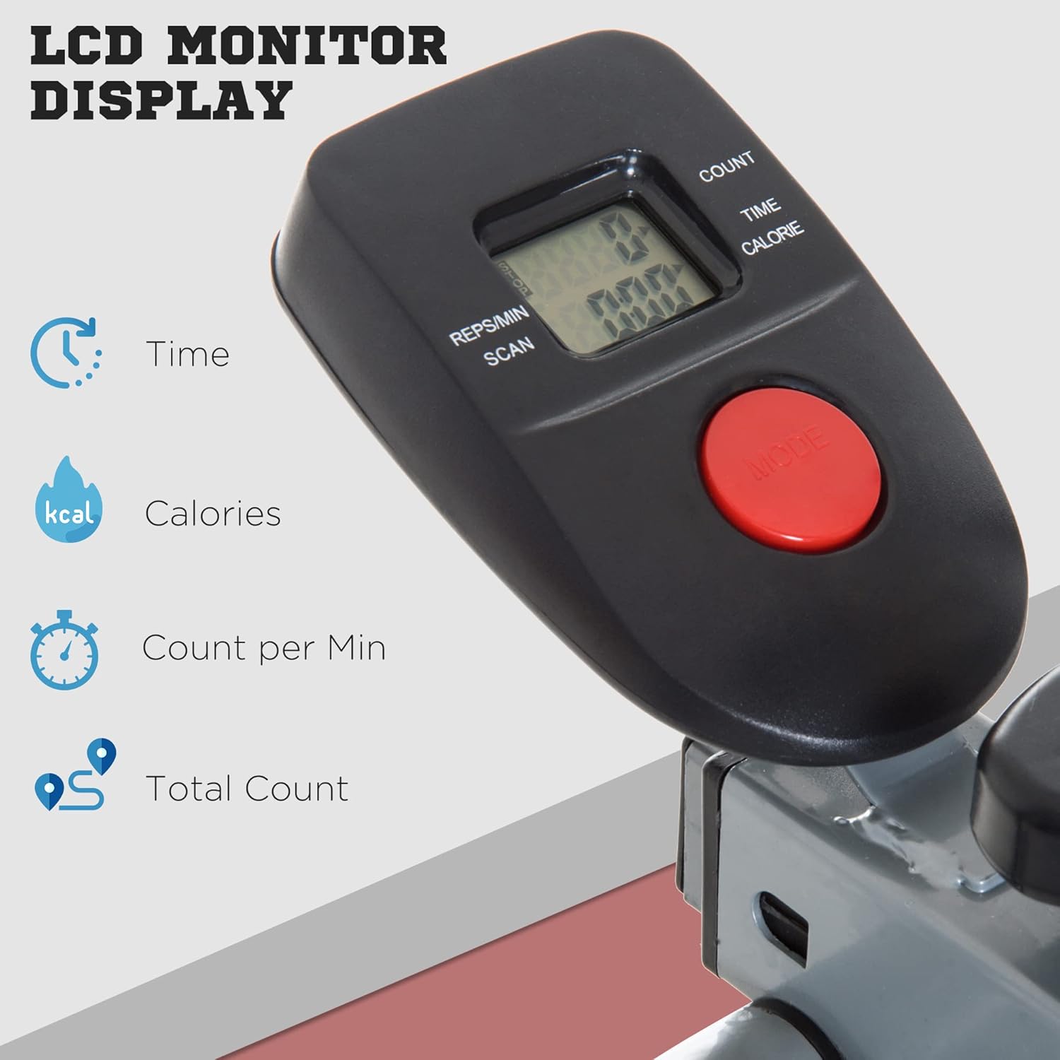 LCD monitor: Displays time, calories burned and distance, helping you stay motivated and meet fitness objectives.