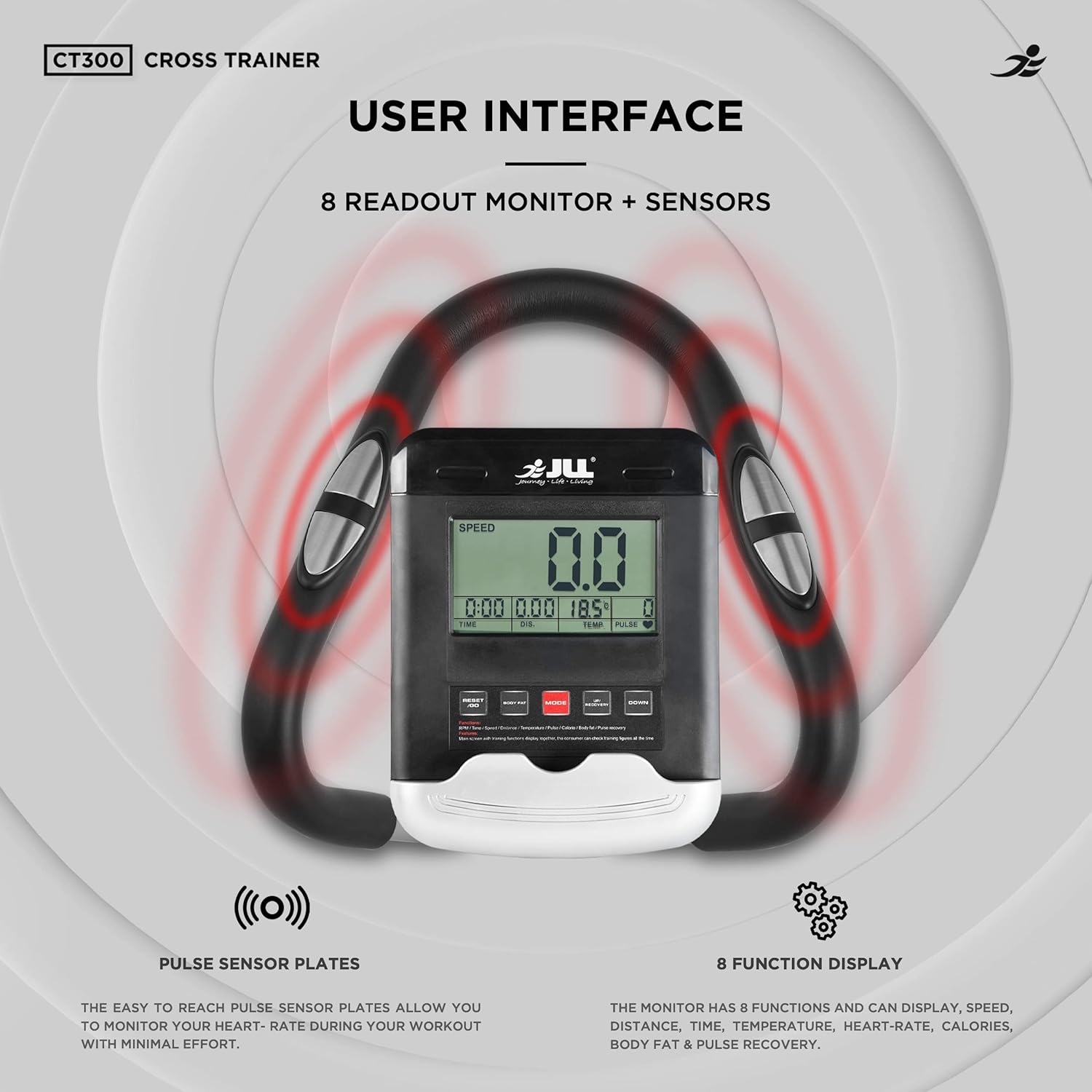 JLL® CT300 Home Luxury Elliptical Cross Trainer, 2025 New Magnetic Resistance Elliptical Fitness Cardio Workout with 8-level Magnetic Adjustable Resistance, Two Way Flywheel. Silver Colour