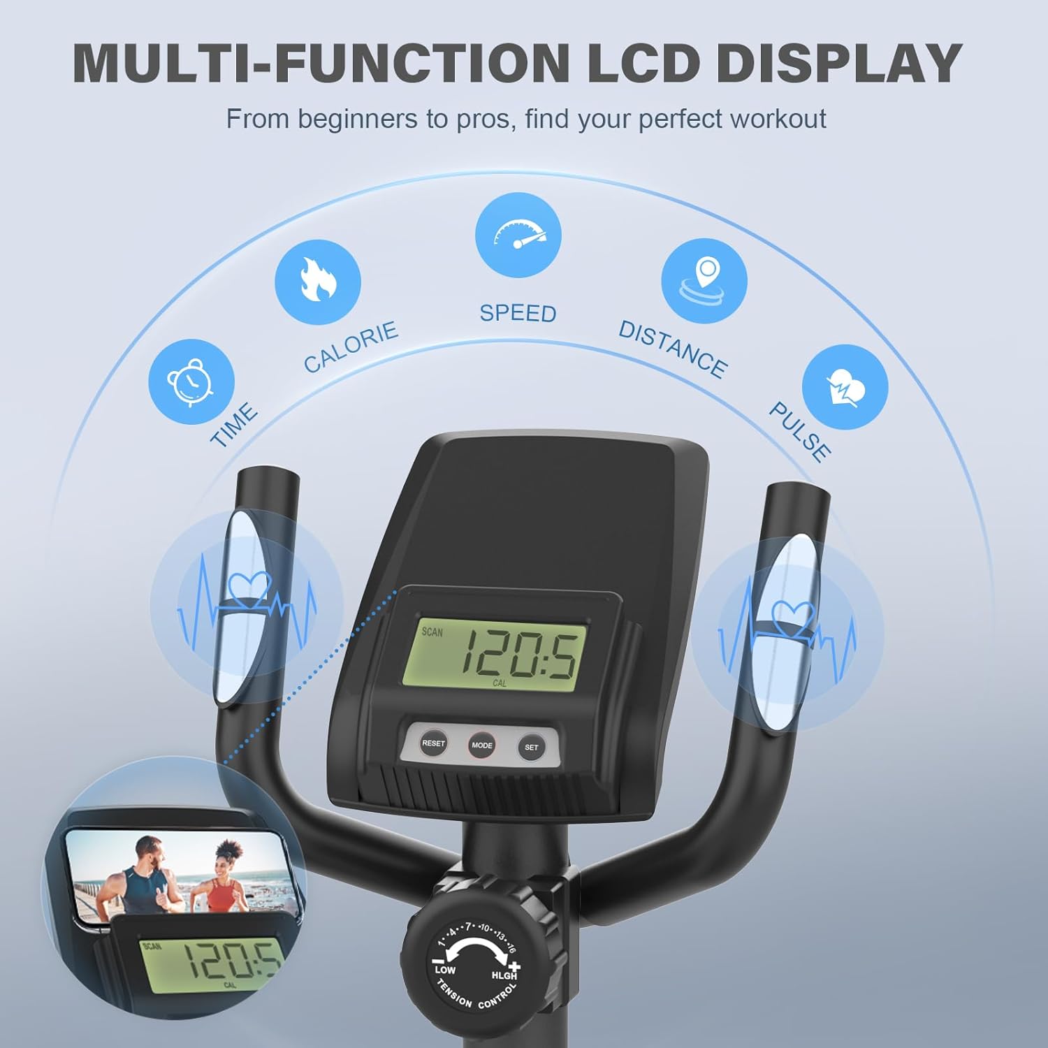 【16 Levels of Magnetic Resistance】The upgraded 16 levels of dynamic resistance accommodate all training levels, from beginners to the highest intensity. Manual magnetic control does not require power supply, just turn the knob to adjust. Whether you are walking, jogging, or running, this machine can meet your various workout needs.