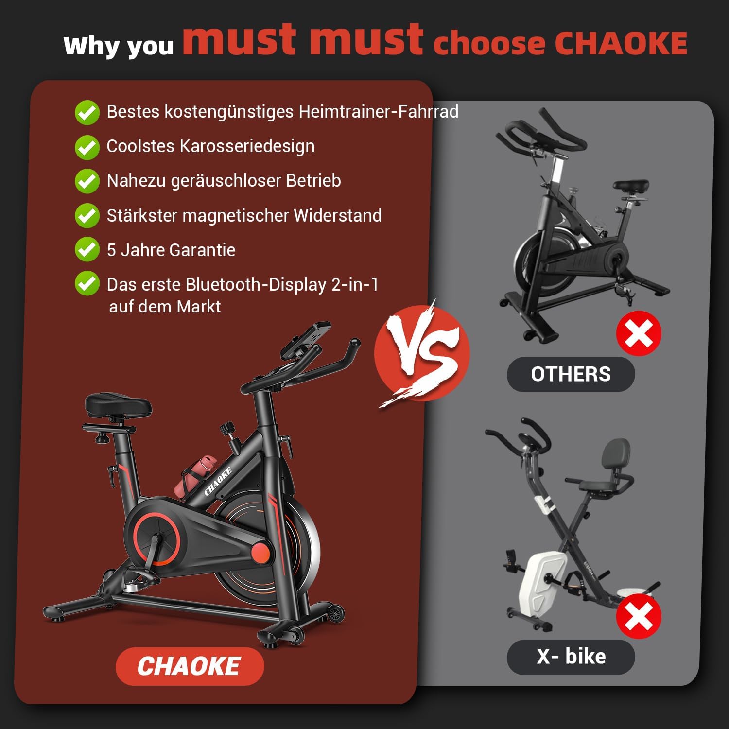 Exercise Bike, CHAOKE Indoor Cycling Bike (2025) – Magnetic Stationary Bike, Ultra-Quiet, Durable, Fully Adjustable for Home Fitness & Cardio, Comfortable Seat, 360LBS Capacity Strength Training
