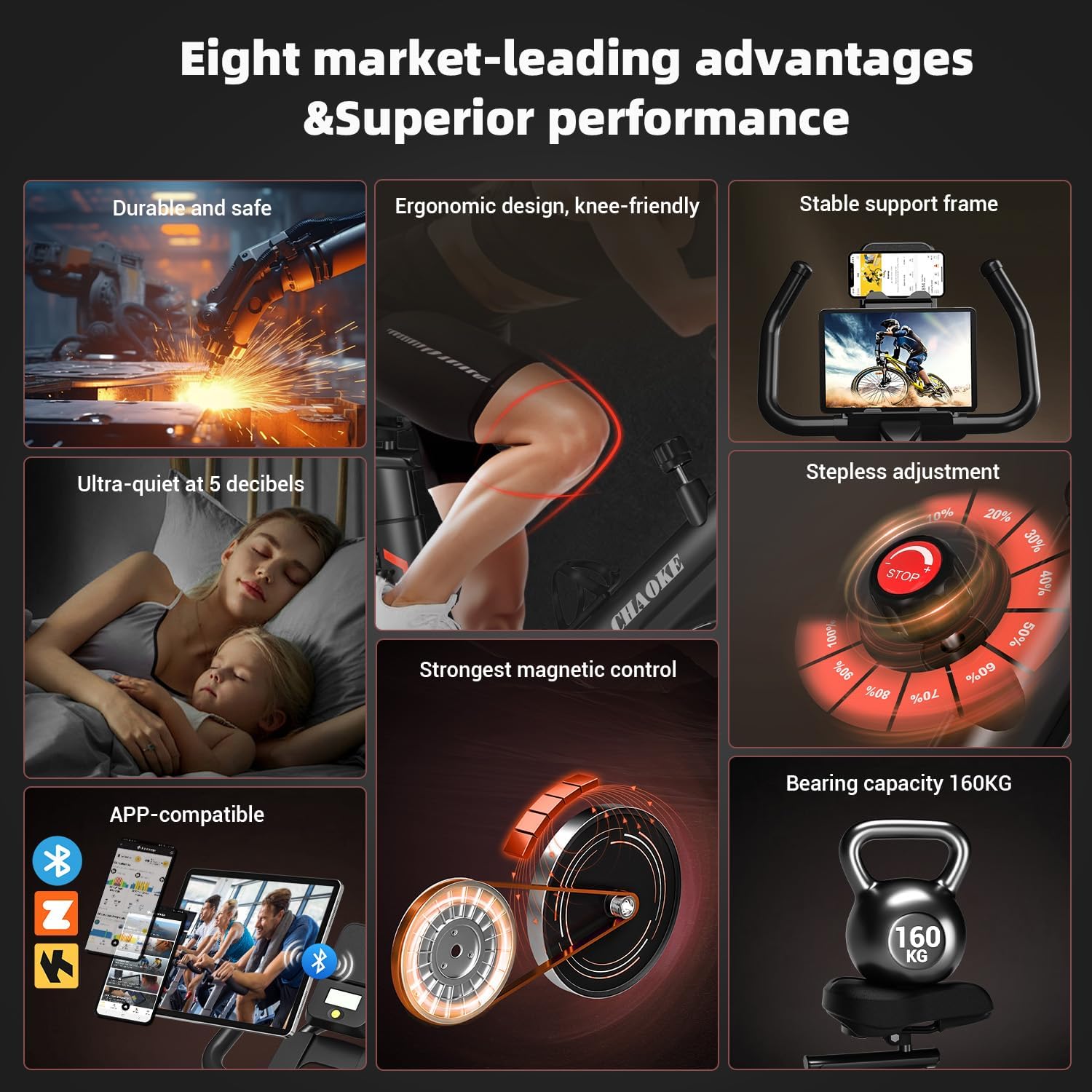 πŸπŸŽπŸπŸ“ 𝐍𝐄𝐖 ππ‹π”π„π“πŽπŽπ“π‡ πŒπ€π†ππ„π“πˆπ‚ π‘π„π’πˆπ’π“π€ππ‚π„ π„π—π„π‘π‚πˆπ’π„ ππˆπŠπ„οΌš The 2025 Bluetooth Magnetic Resistance Exercise Bike is the pinnacle of innovation, featuring a whisper-quiet magnetic systemβ€”producing only 5 dB of noise (industry standard is 10 dB)! This means you can work out at any time, day or night, without ever disturbing others. Traditional bikes use magnets to increase resistance by moving them closer to the flywheel, but this breakthrough design combines magnets and brake pads for dual control, allowing for ultra-responsive and instant resistance changes. You’ll feel like you’re working with your very own personal trainer!