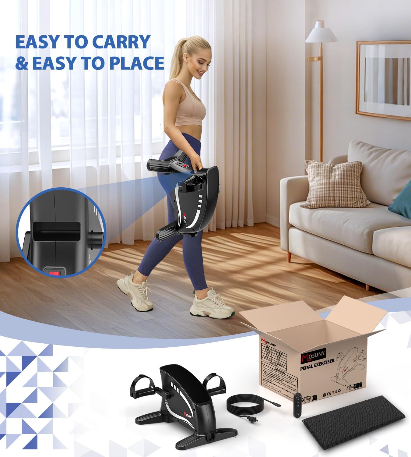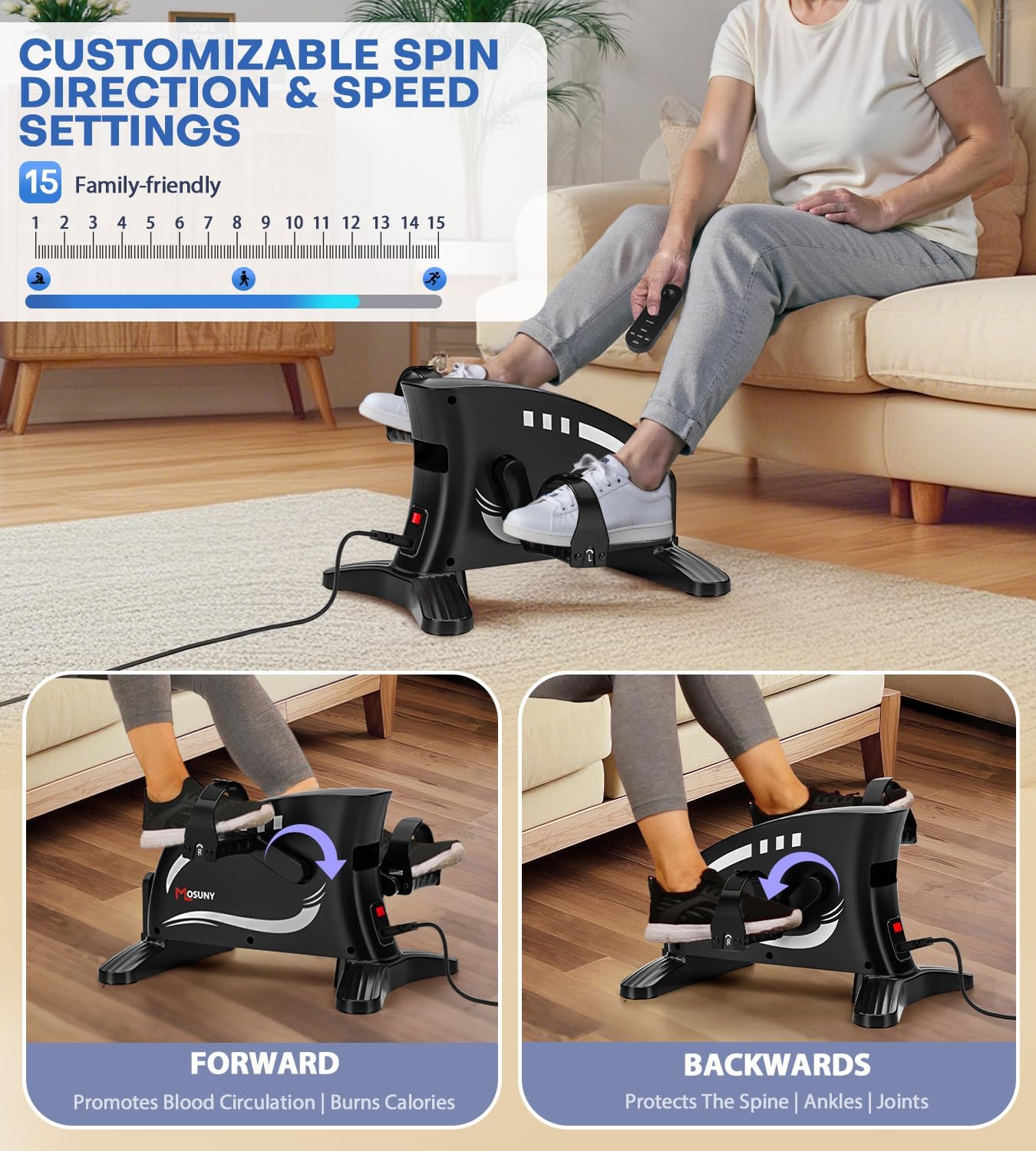 MOSUNY Electric Pedal Exerciser, Mini Exercise Bike 15 Adjustable Speed, Arm/Leg Exerciser for Seniors, Physical Therapy, Under Desk Bike for Home/Office Workout with LCD Display, Remote Control