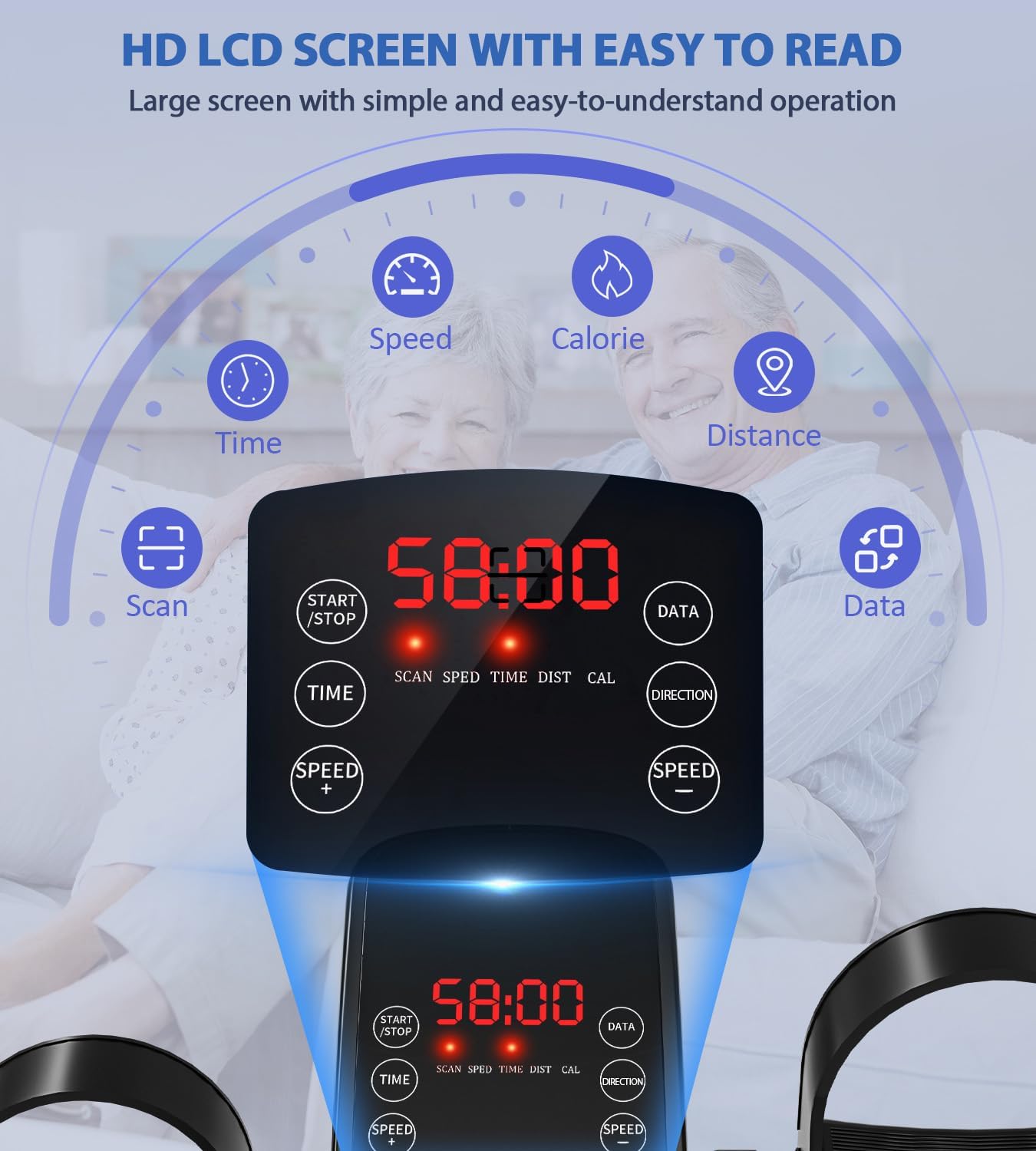 【LCD Display & Real-time Recording】: Multifunctional LCD touchscreen is added based on traditional exercise equipment. Our under desk bike equipped with a large screen with clear fonts, easy to operate and watch, it can clearly display exercise data (time, distance, speed, calories, counter). Real-time observation of workout status.