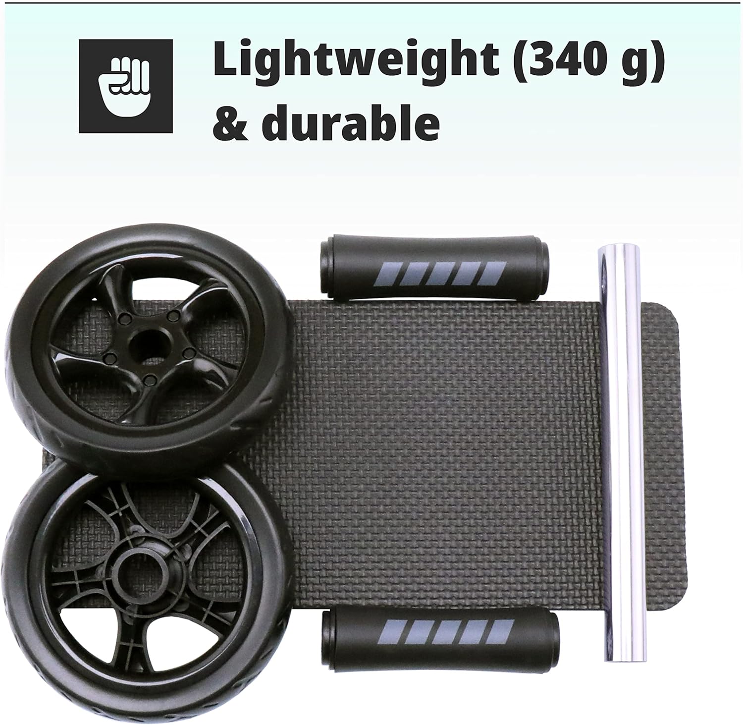 Abdominal Exercise Roller: Made of quality material that allows you to do unrestricted movement for a more intense workout. Our (340g) fitness roller has dual glide wheels to help with balance without damaging your surface