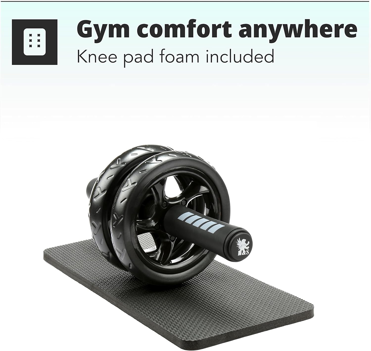 H&S Ab Roller for Strength Training Equipment – Abs Sit Up Exercise Wheel for home gym with Extra Thick Knee Pad Mat – Ab Trainer w/Dual Glide Wheels