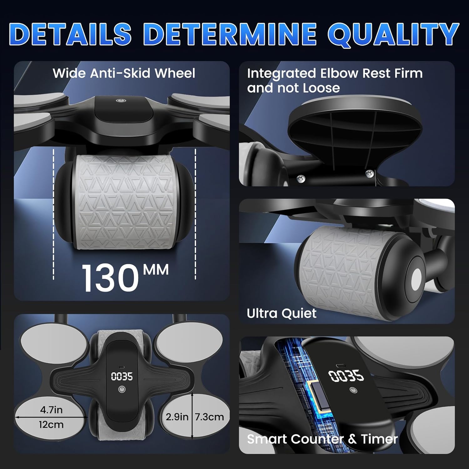 【AB Roller Wheel With Premium Quality Construction】Made from eco-friendly and durable material, this ab roller has non-slip, sweat-absorbent sponge grips that provide comfort and durability. Wheel features five layers of anti-slip materials that are noise-free and wear-resistant, ensuring quiet operation and floor protection. At the same time this abdominal roller features timer, counter, and calorie calculation functions. Unlike its predecessor, it now counts each round, providing practical real-time exercise data.