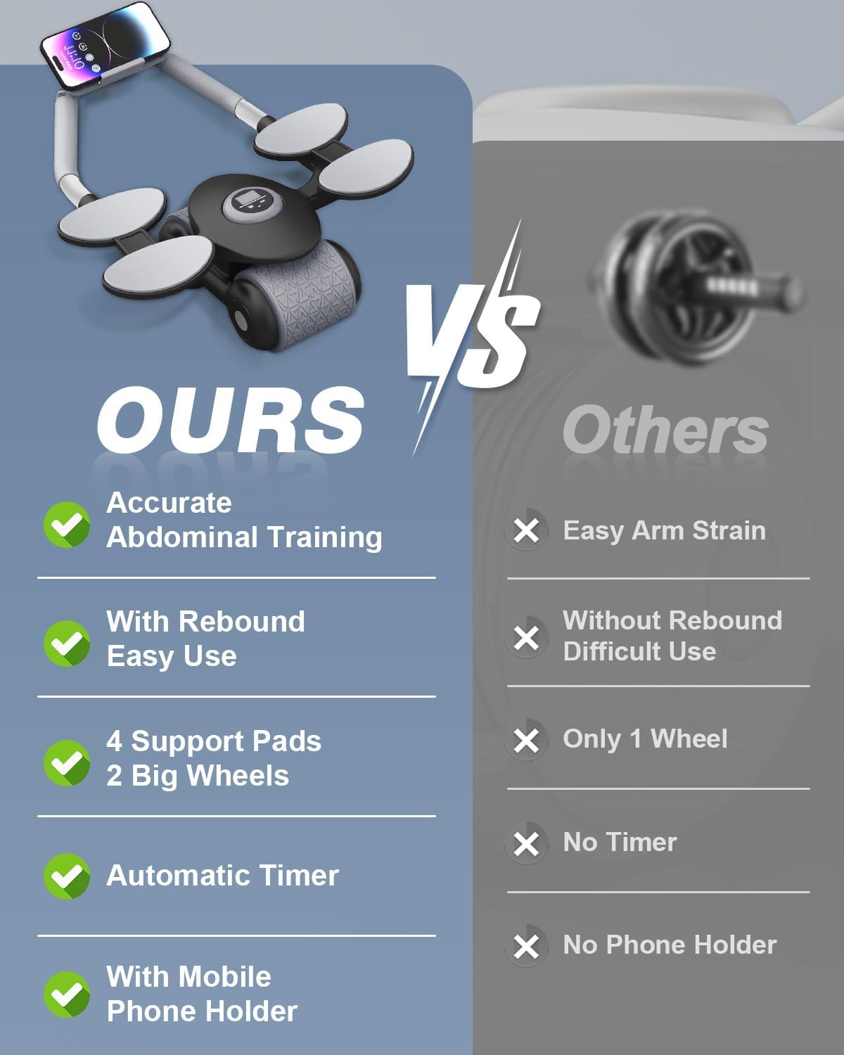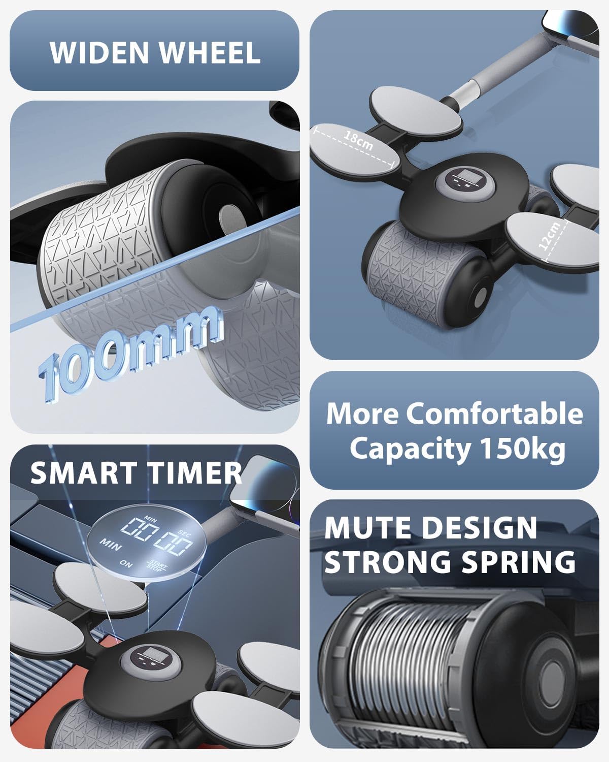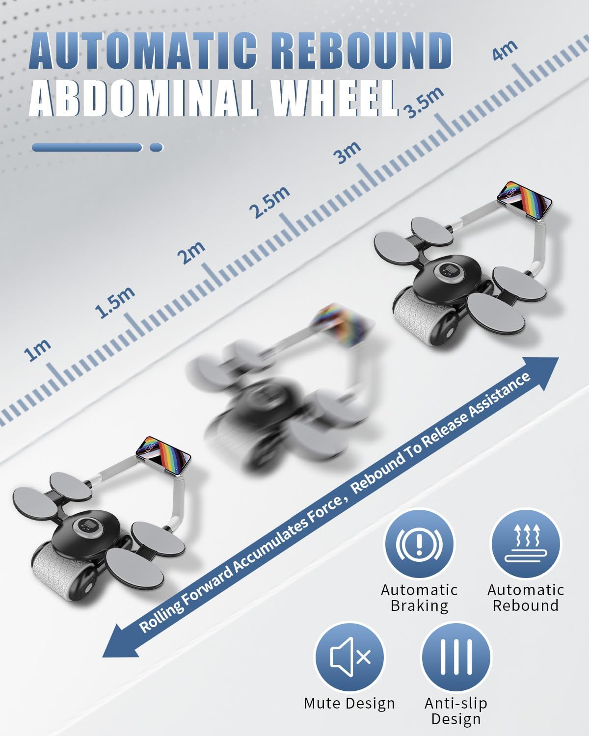 Automatic Rebound Ab Roller: The ab roller exercise wheel features an innovative automatic rebound function. Once the ab wheel reaches a taut state, it triggers a smooth rebound, making it effortless to reset. This design minimizes strain on your arms and shoulders, allowing for an easier and more effective workout.