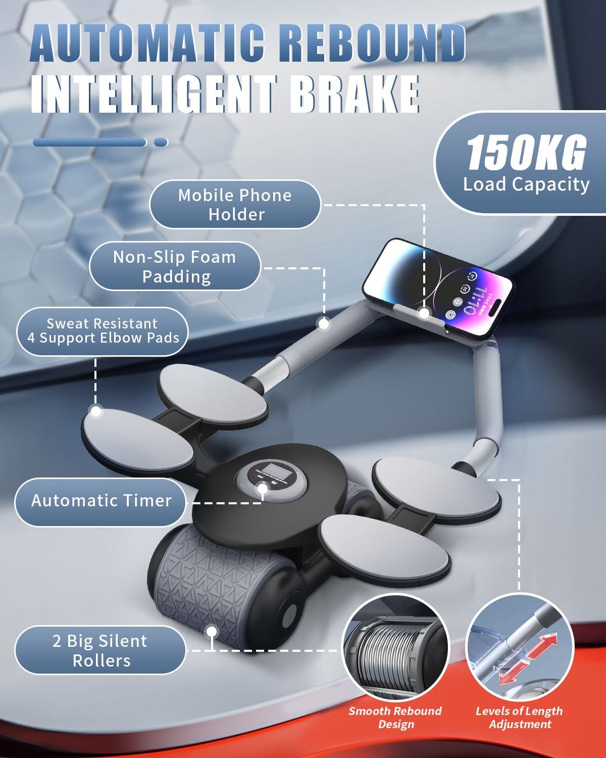 Victoper Automatic Rebound Ab Roller Upgraded Ab Roller Exercise Wheel with Timer & Knee Mat Easy to Assemble Ab Wheel Elbow Support Abs Roller Wheel Gym Equipment for Home Men Women Abdominal Wheel