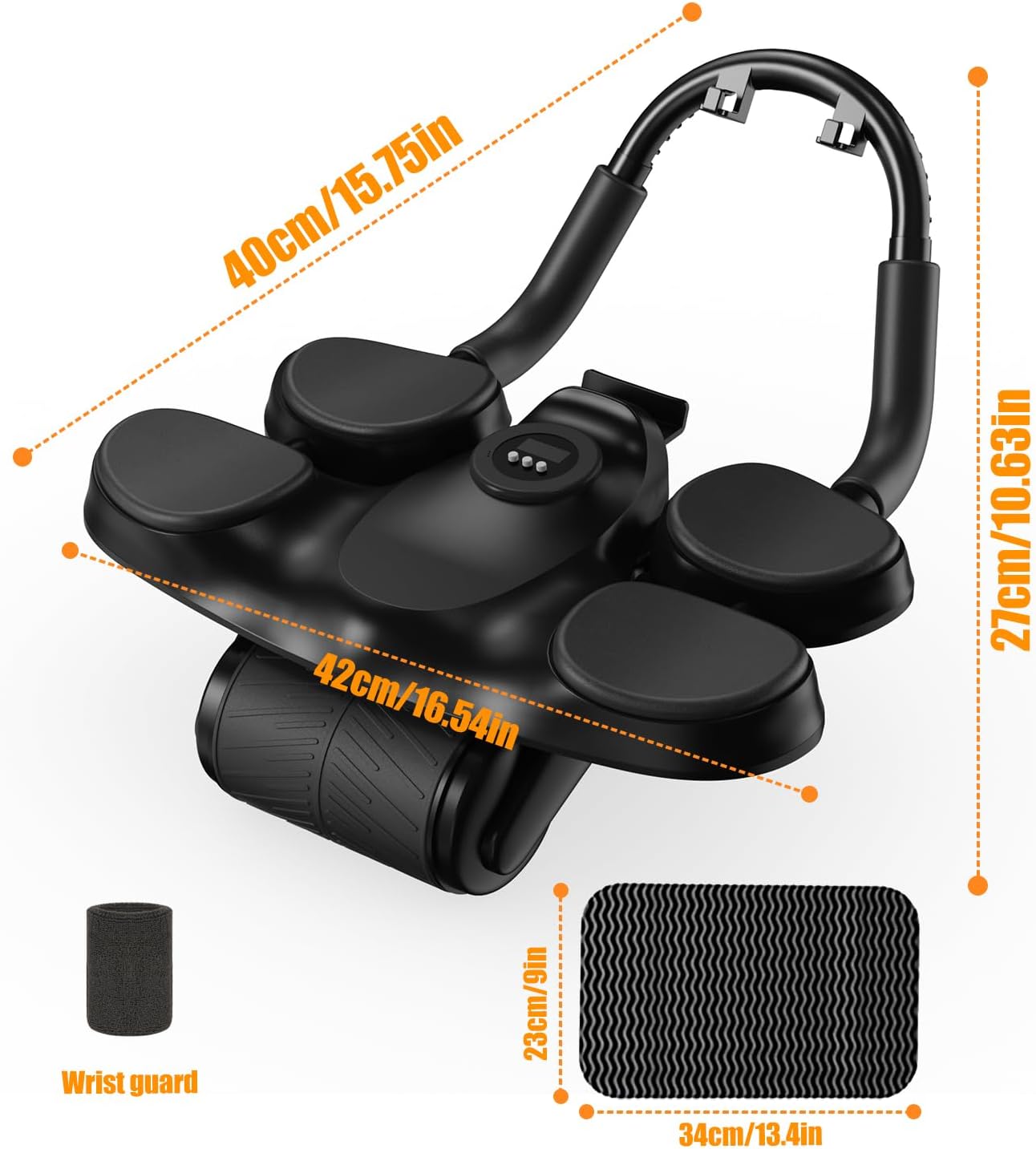 WLZP Ab Roller Wheel,1.5M Automatic Rebound Abdominal Wheel with Knee Mat & Timer, Ab Roller Exercise Wheel with Adjustable Elbow Support