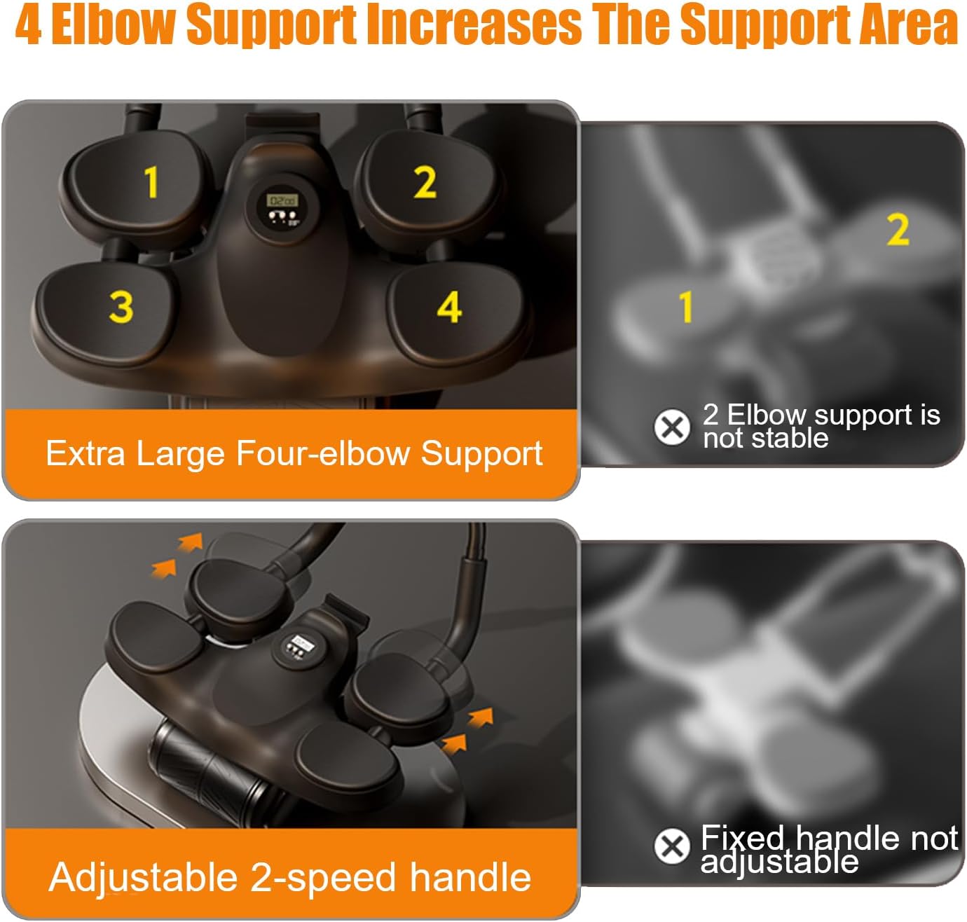 【Ergonomically Designed】 Our upgraded version of the AB Wheel Roller is equipped with 4 elbow supports with thickened cotton mops and a handle with adjustable 2 positions, which increases the support area and evenly distributes the pressure on the hands, prevent neck and spine injuries. Allows you to focus more on training core muscles, making training more comfortable and lasting longer!