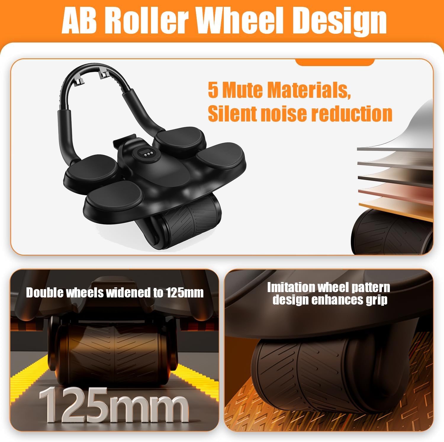 【125MM Double Wheel Support】Our AB Roller fitness wheel adopts the latest 125MM ultra-wide silent double wheel, which provides a larger support area. The imitation wheel pattern design enhances grip, reduces the risk of falling or losing balance, and prevents injuries. Whether you are a beginner or a fitness enthusiast, you can quickly get started and get in shape!
