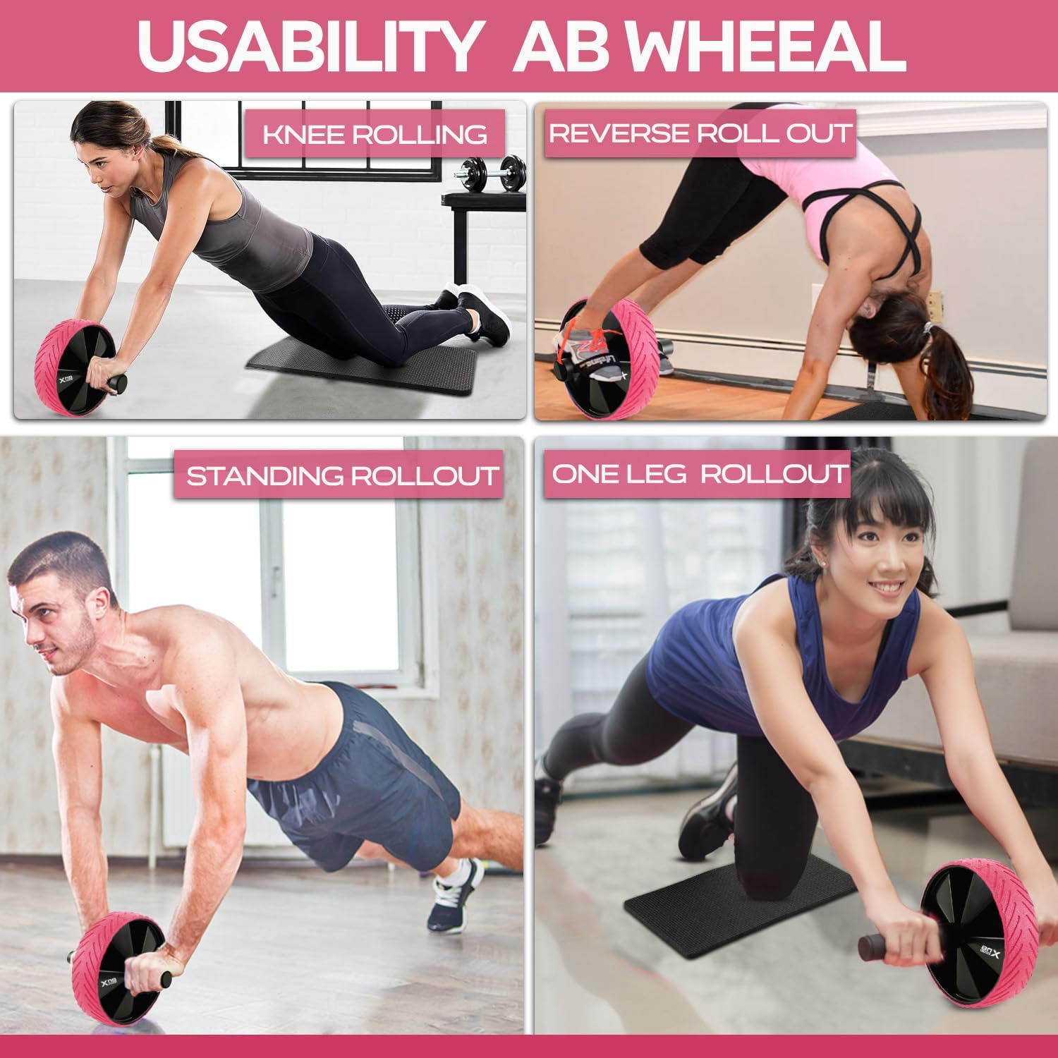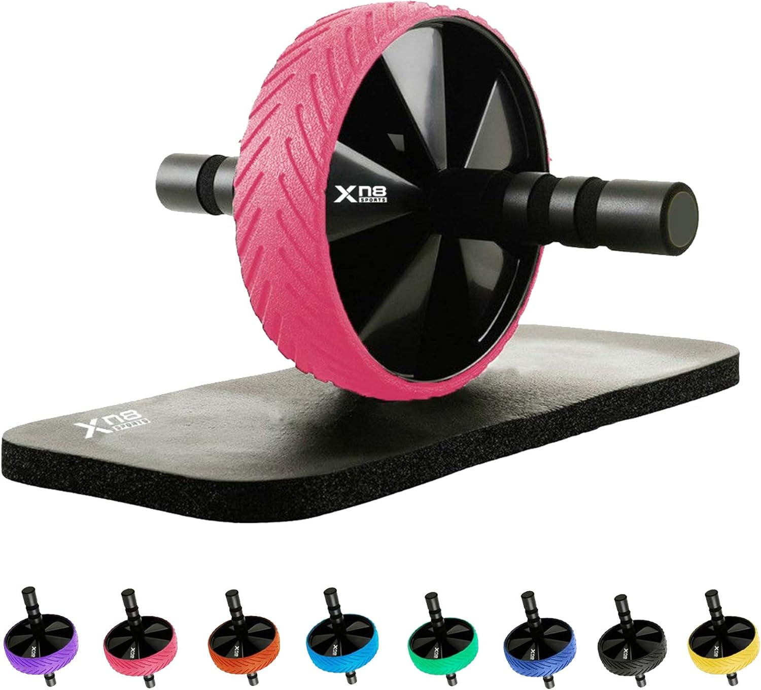 Xn8 Sports Ab Wheel Roller Abdominal Exercise -With Knee Mat Foam Handles-Core Abs Trainer Cruncher For Strength-Training-Fitness-Workout-Home-Gym