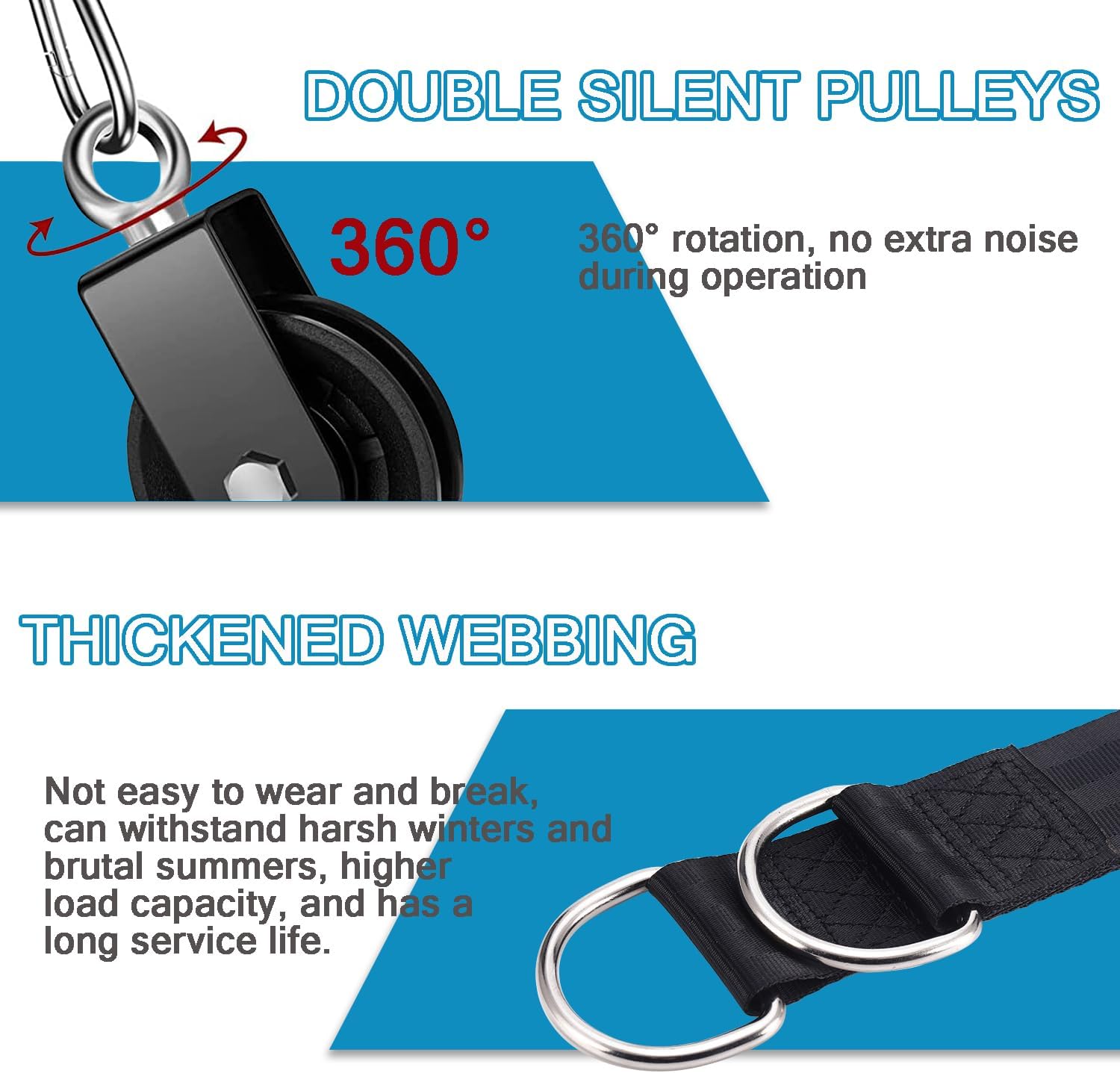 PREMIUM MATERIAL – The gym silent pulley is made of high-quality nylon material.Anti-rust and wear resistance with strong structure.Ultra-silence ball bearings,solid rod,strong load bearings,turns more flexibly,the thickened steel plate bracket and wheel core can enhance the bearing capacity.When it works,you can hardly hear the sound.
