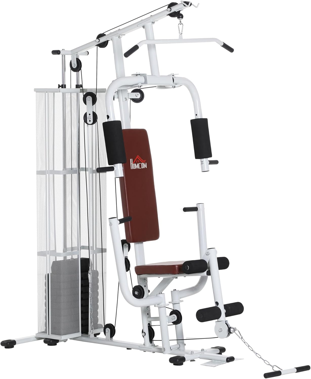 HOMCOM Multi-Exercise Gym Workout Station, 45Kg Weight Stack Training System, Full Body Fitness for Home Gym